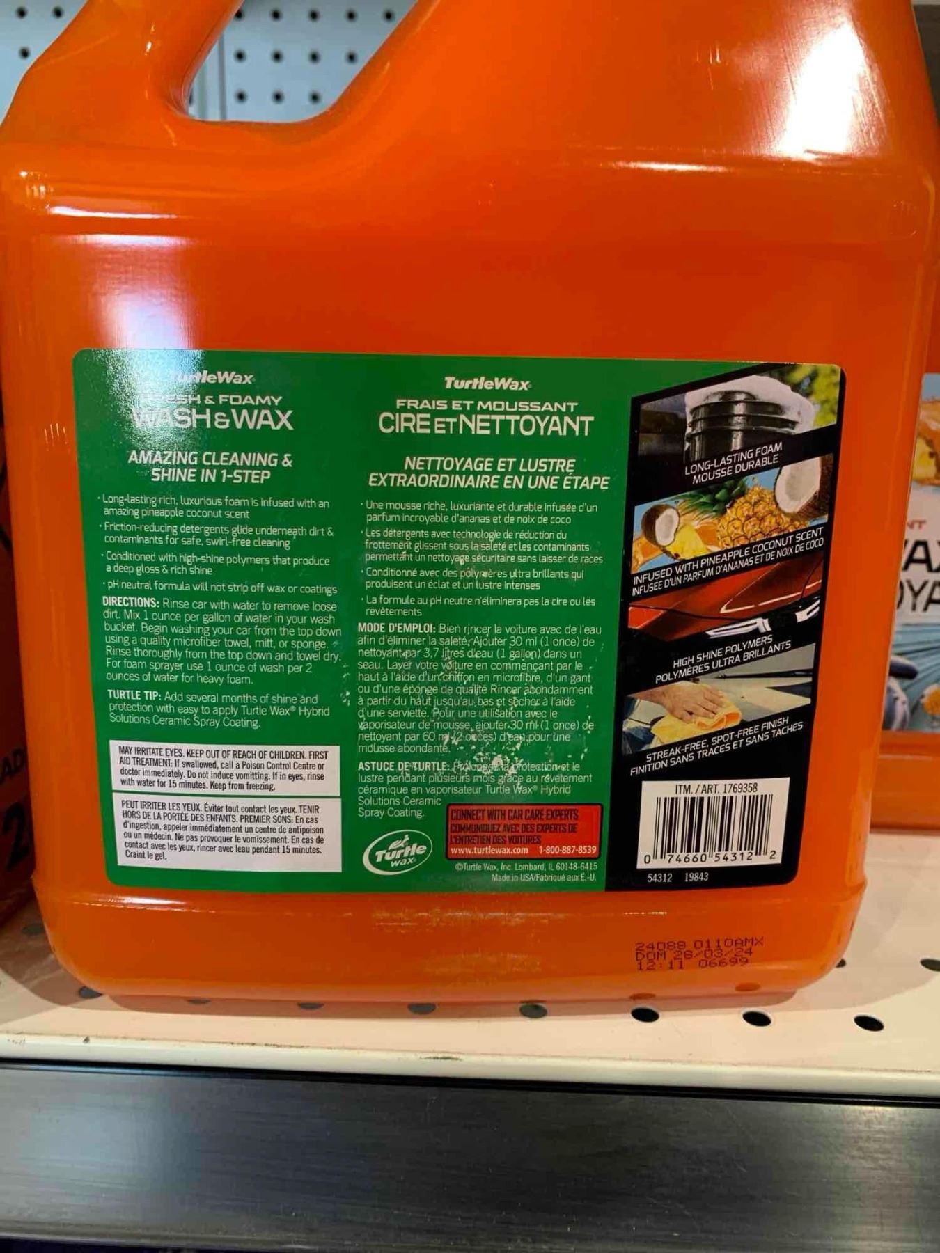 TurtleWax Wash & Wax Fresh & Foamy 3.79L Pineapple Coconut Scent