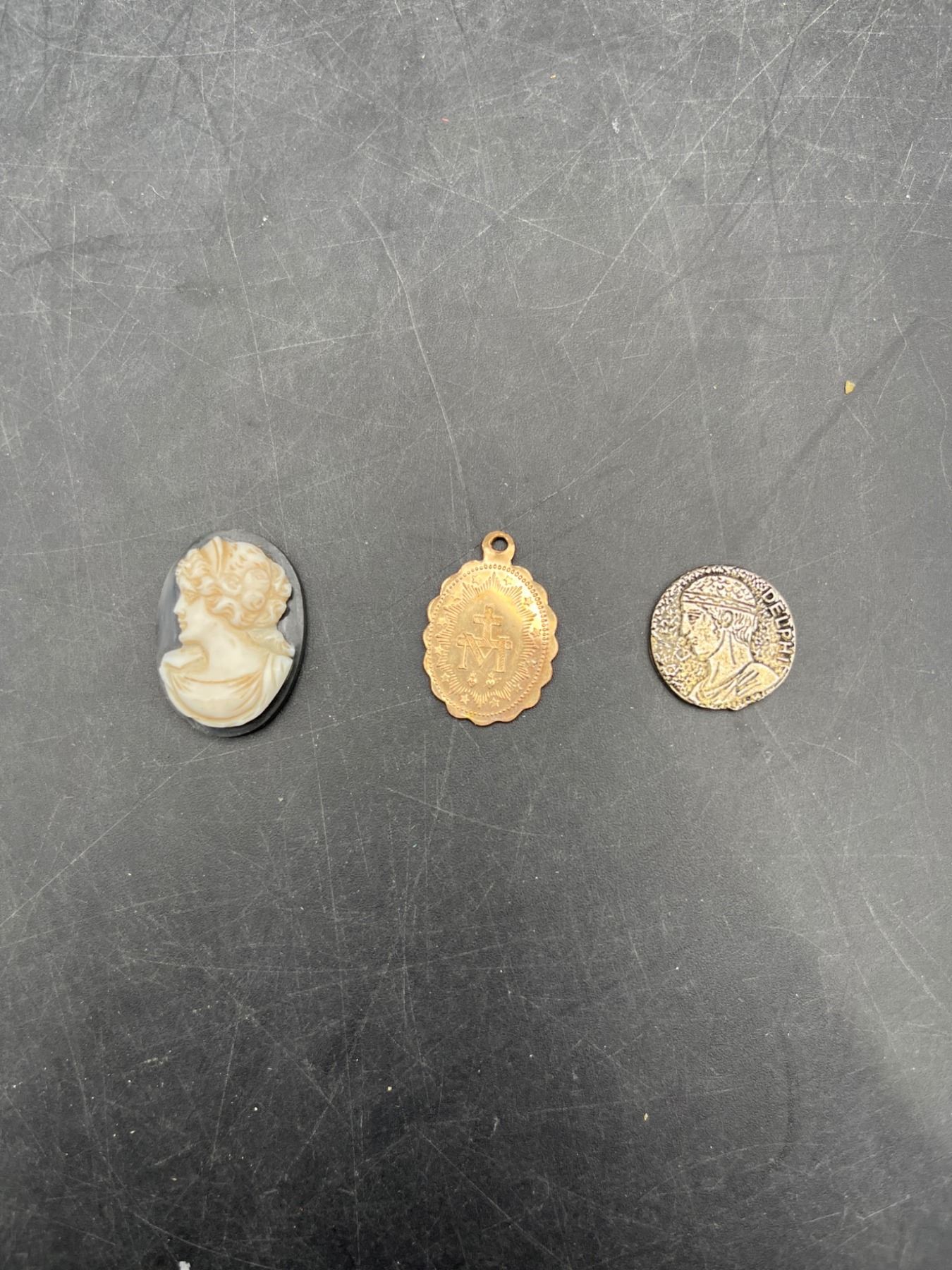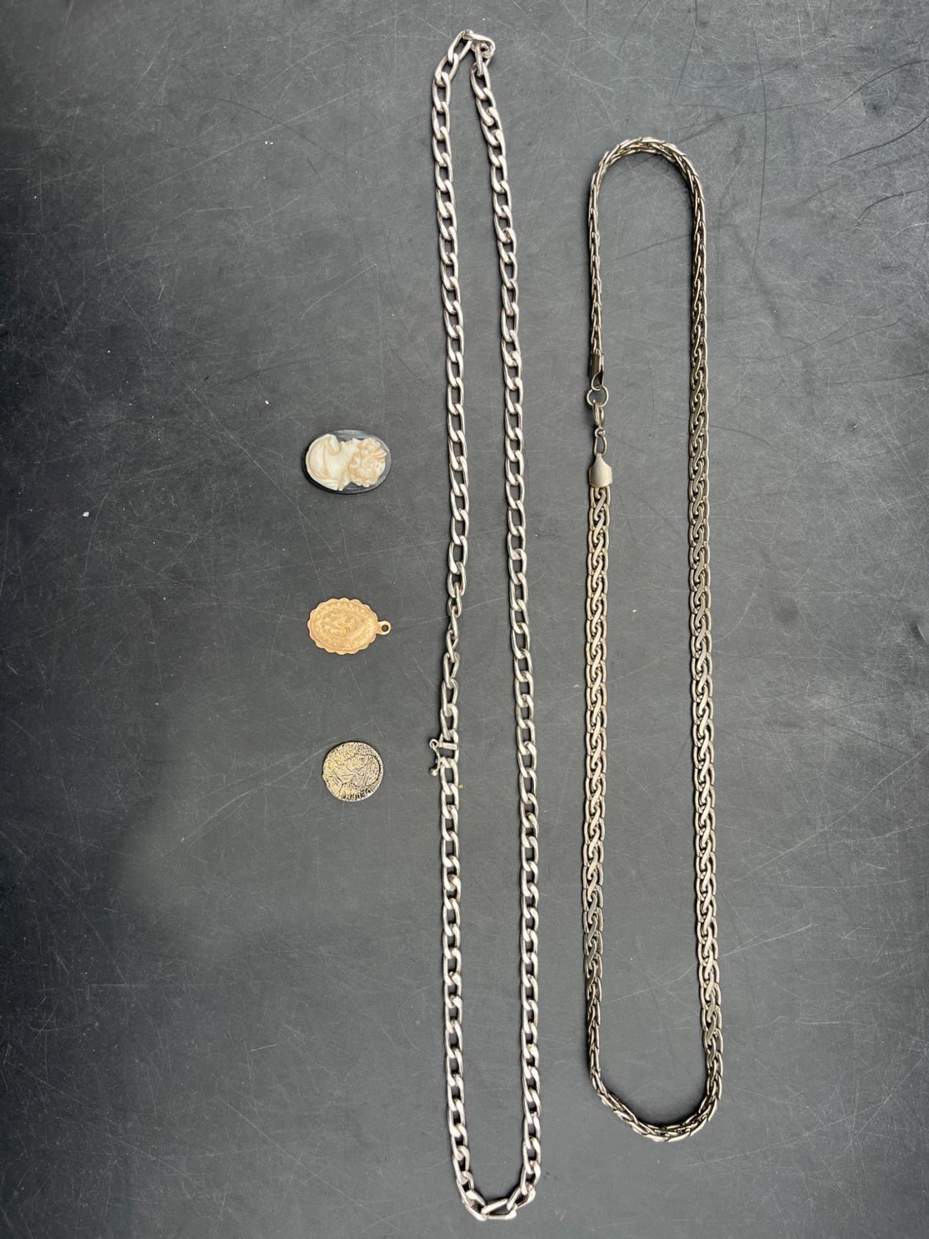Two Chains and Three Pendant Charms Featuring Various Designs