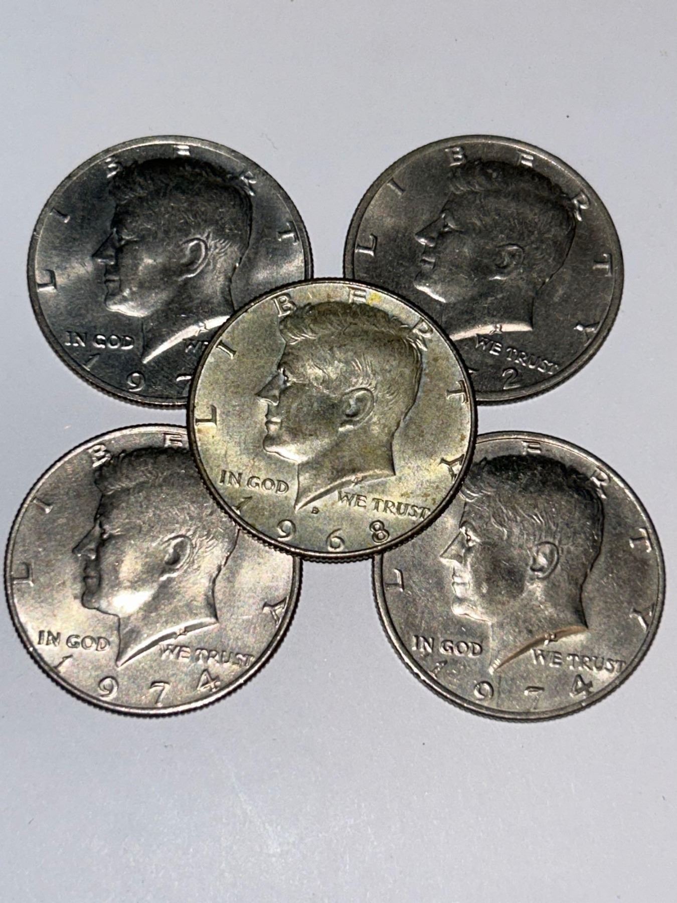 USA Vintage Kennedy Half Dollars - LOT of 5