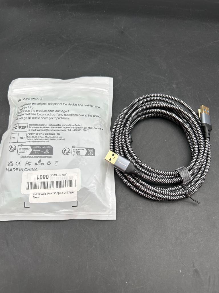 USB 3.0 Braided Cable for Data Transfer and Charging, 2 Units