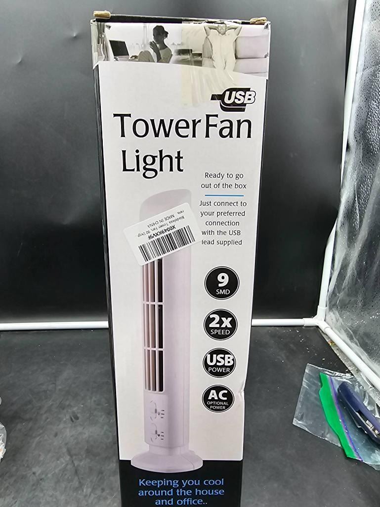USB Tower Fan with Light and 2-Speed Settings
