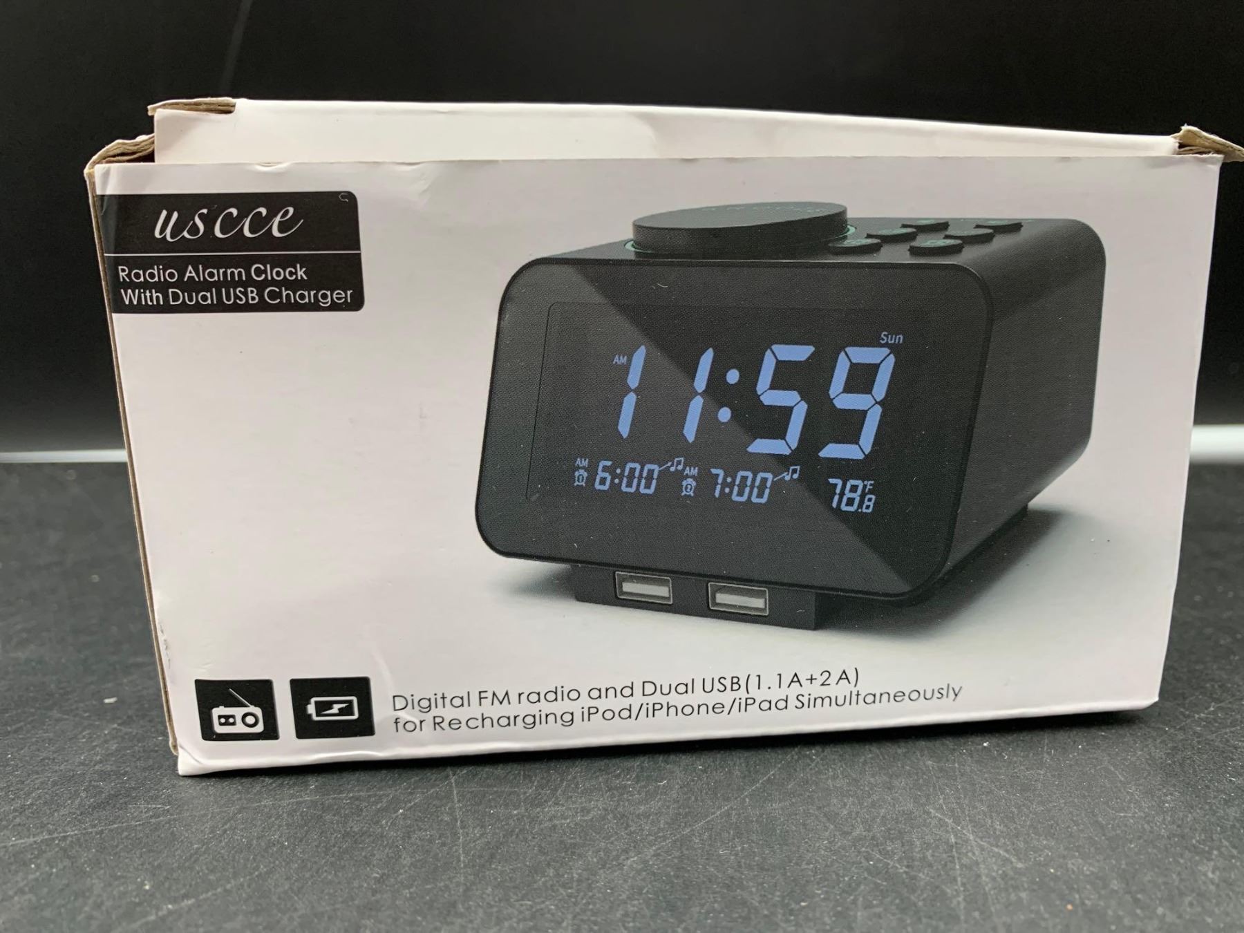 USCCE digital radio alarm clock with dual usb charger
