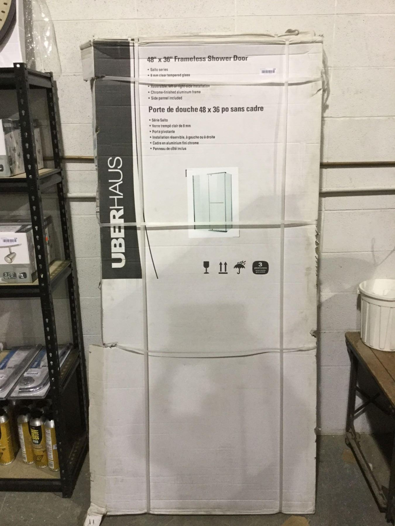 UberHaus 46" x 34" Frameless Shower Door (46" 3/4 x 34" x 75")
