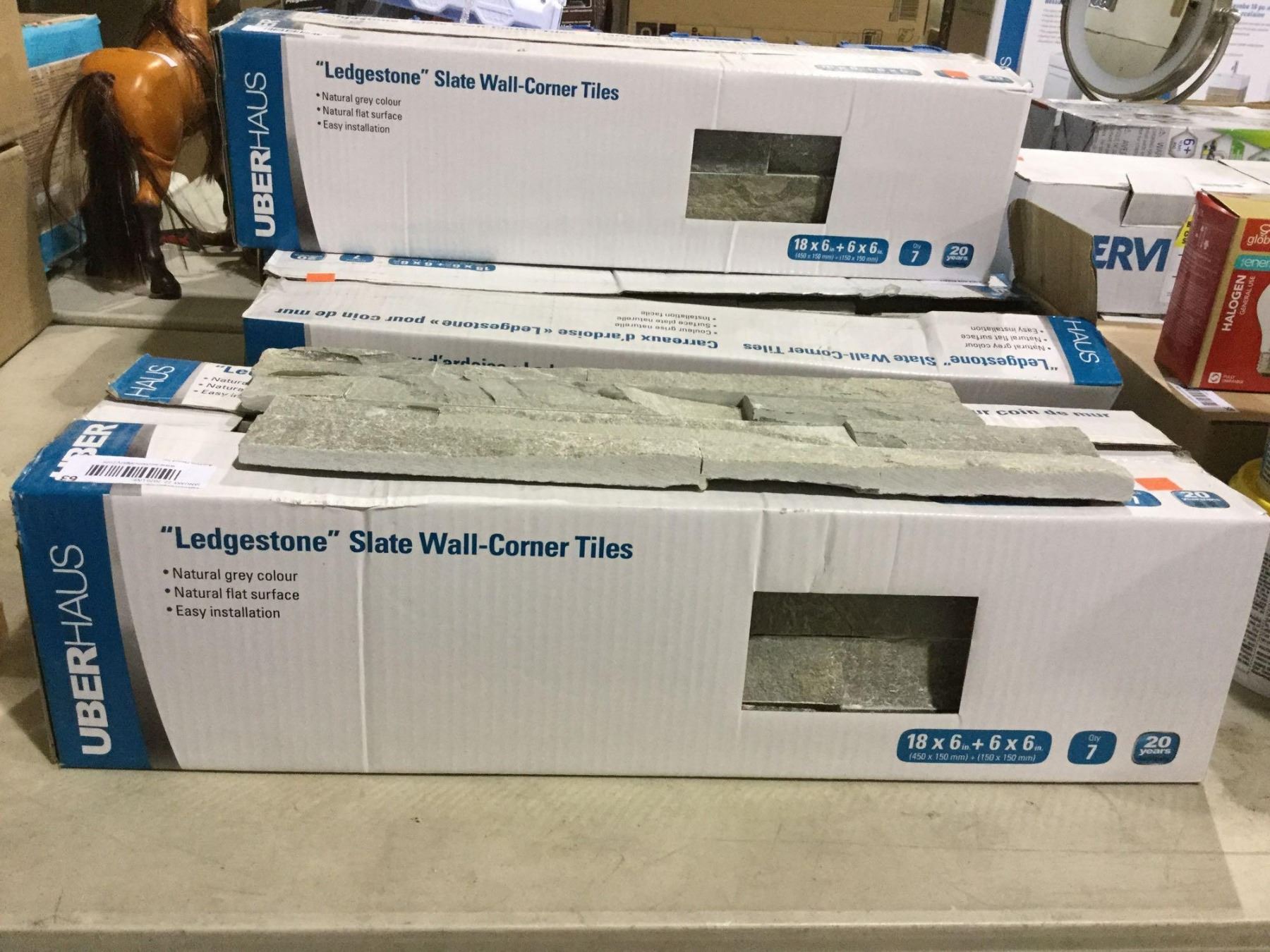 UberHaus Ledgestone Slate Wall-Corner Tiles - Grey (18 x 6" + 6 x 6")