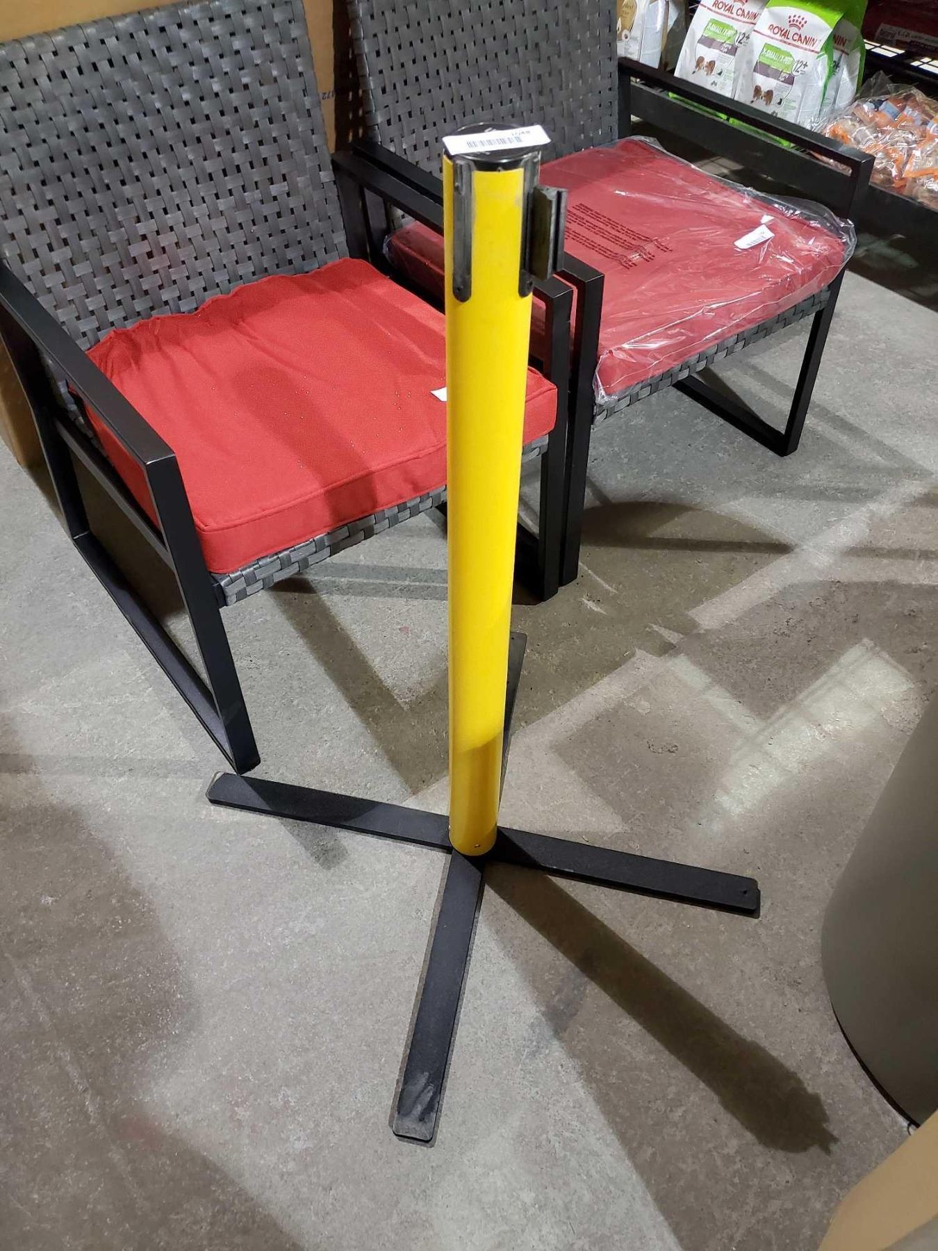 Uline Freestanding Tensabarrier belt stanchion with Caution Tape Belt