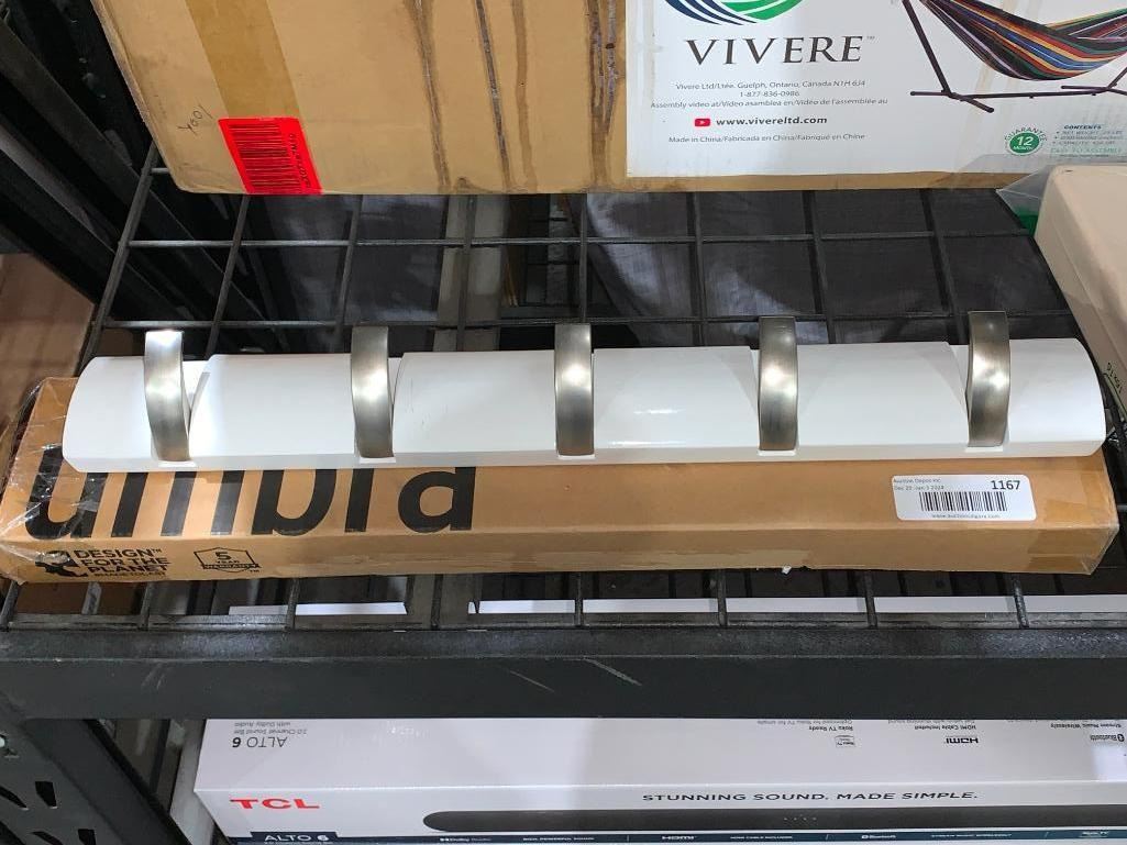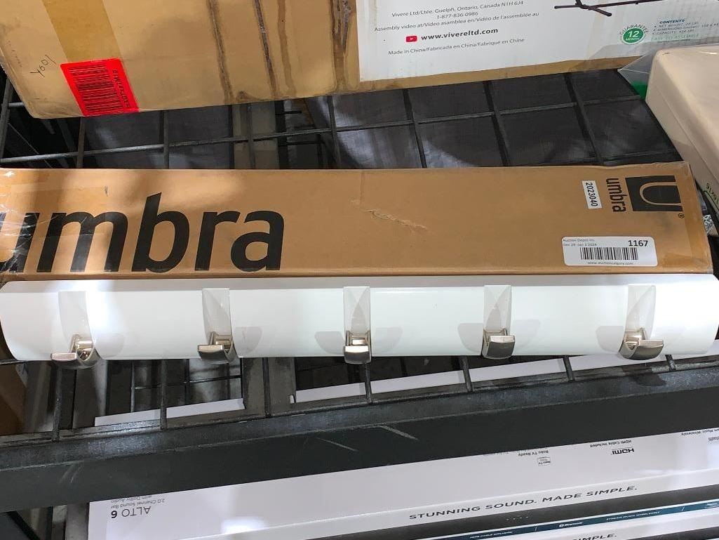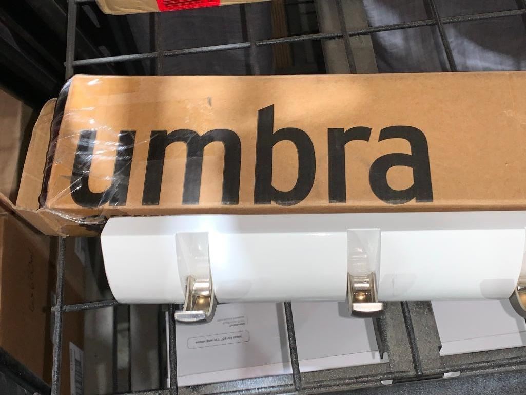 Umbra Flip 5-Hook Wall Mounted Coat Rack, Modern, Sleek, Space-Saving Coat Hanger with 5 Retractable Hooks to Hang Coats, Scarfs, Purses and More, White