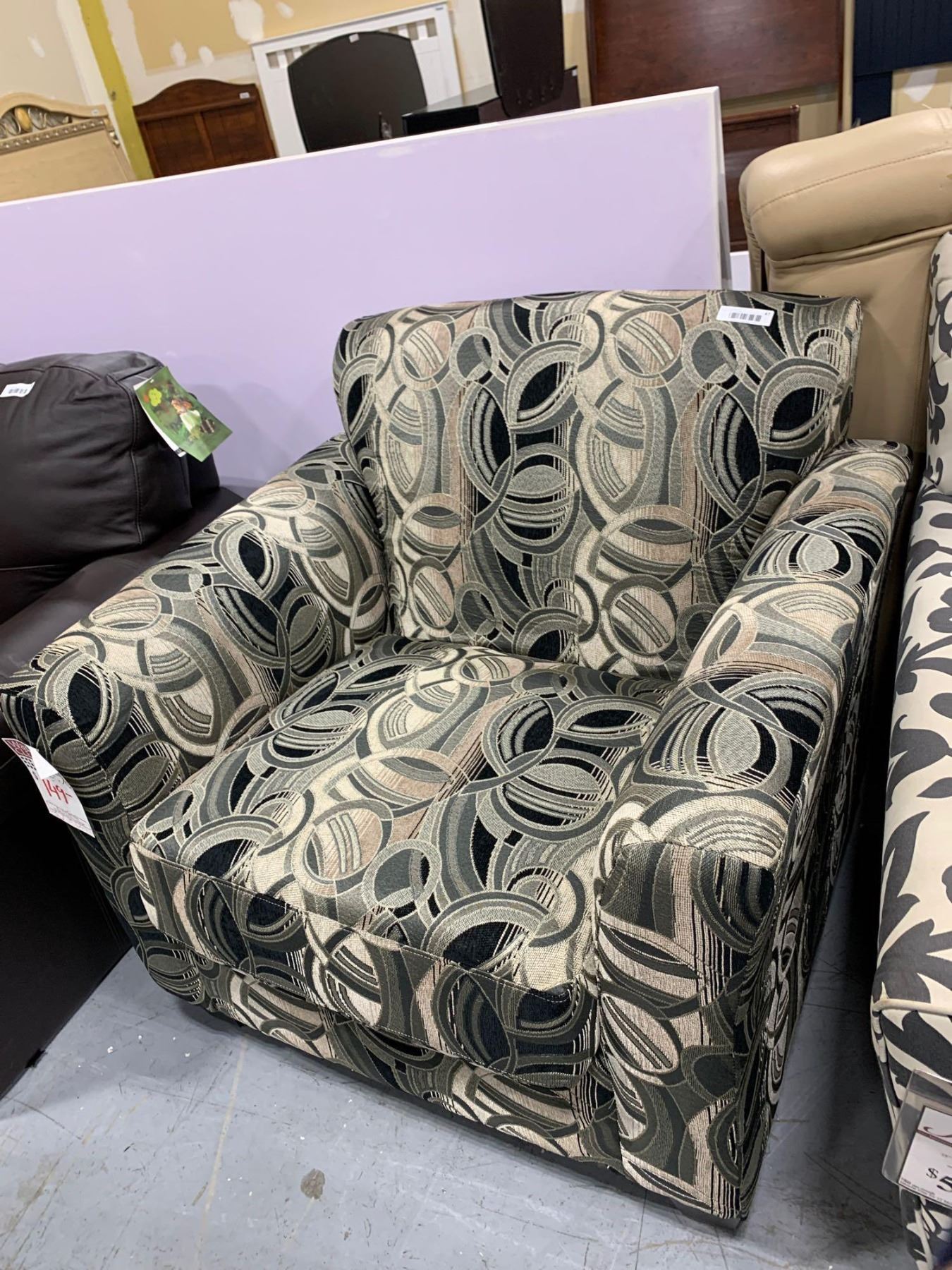 Upolstered Black Tan Swirl Sofa Chair