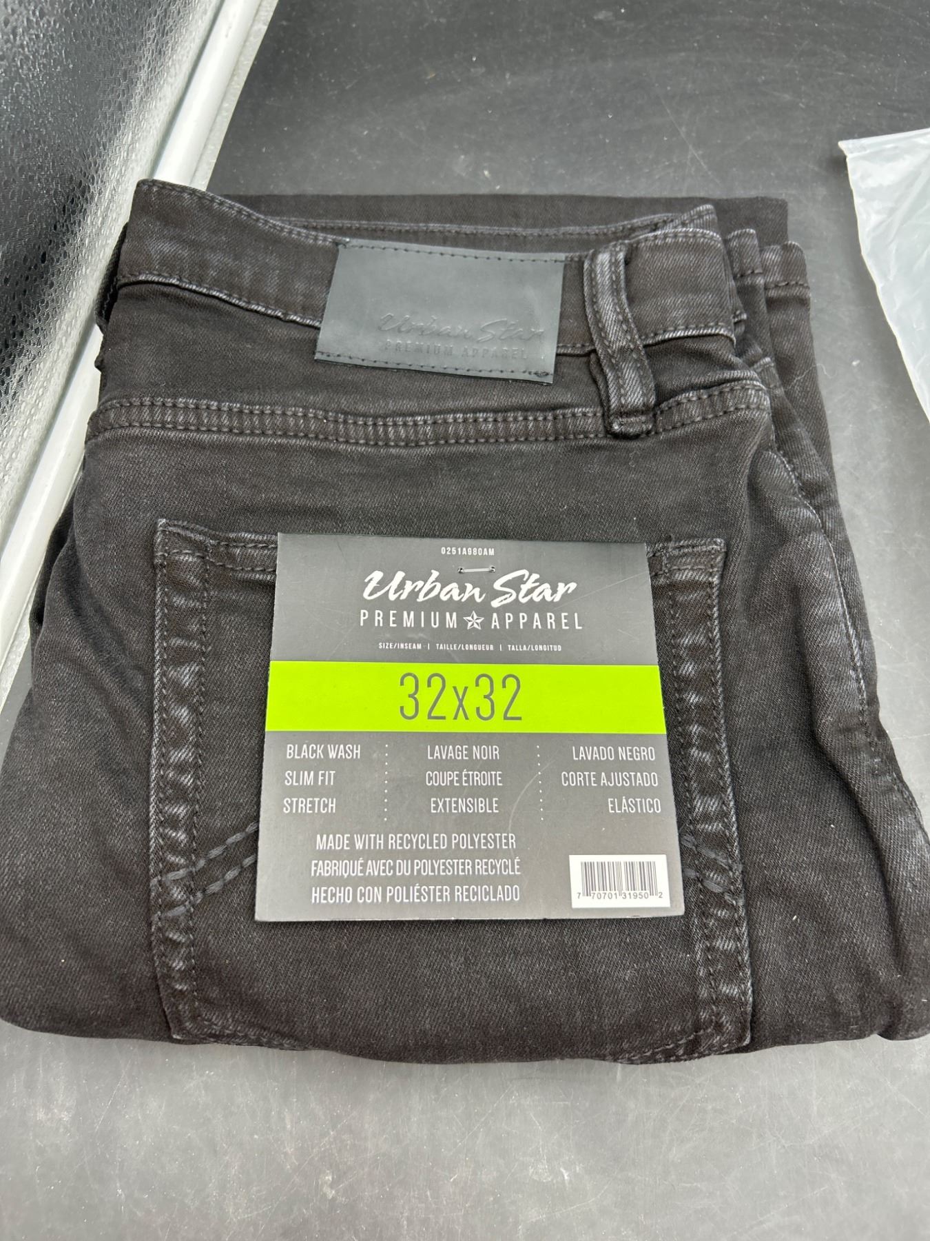 Urban Star Premium Apparel Men’s Jeans 32×32, Slim Fit, Black Wash