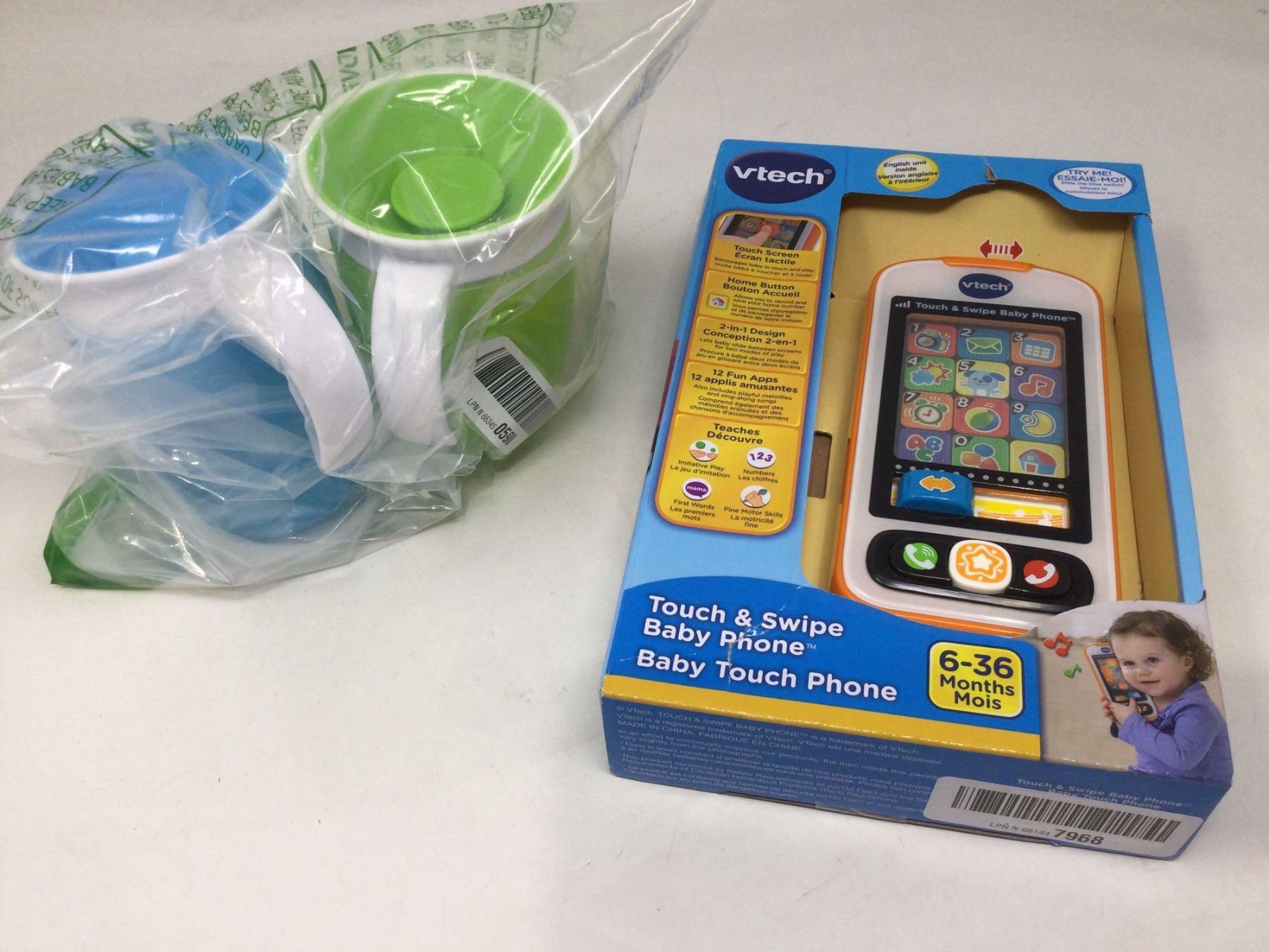 V Tech touch & swipe baby phone with sippy cups
