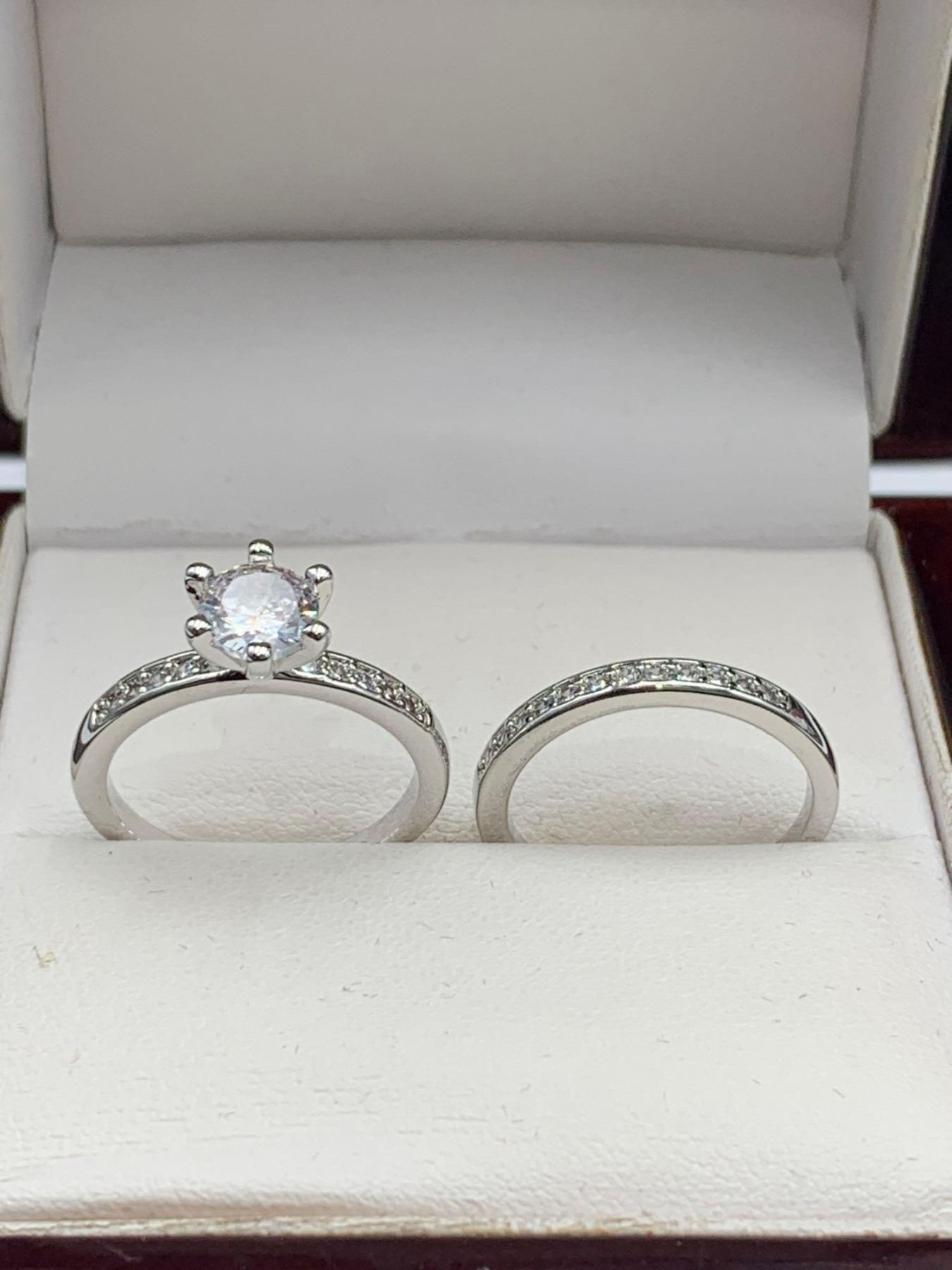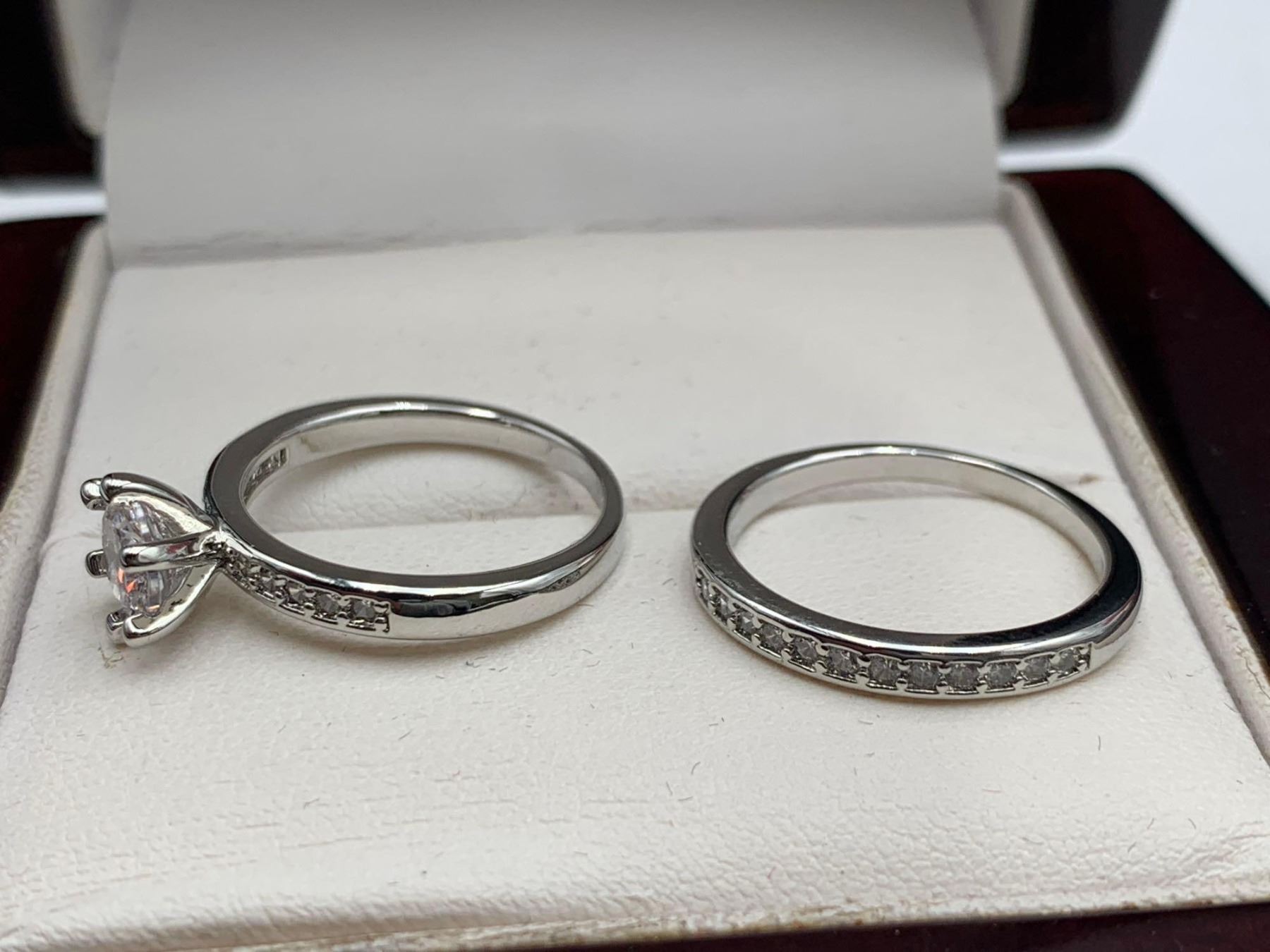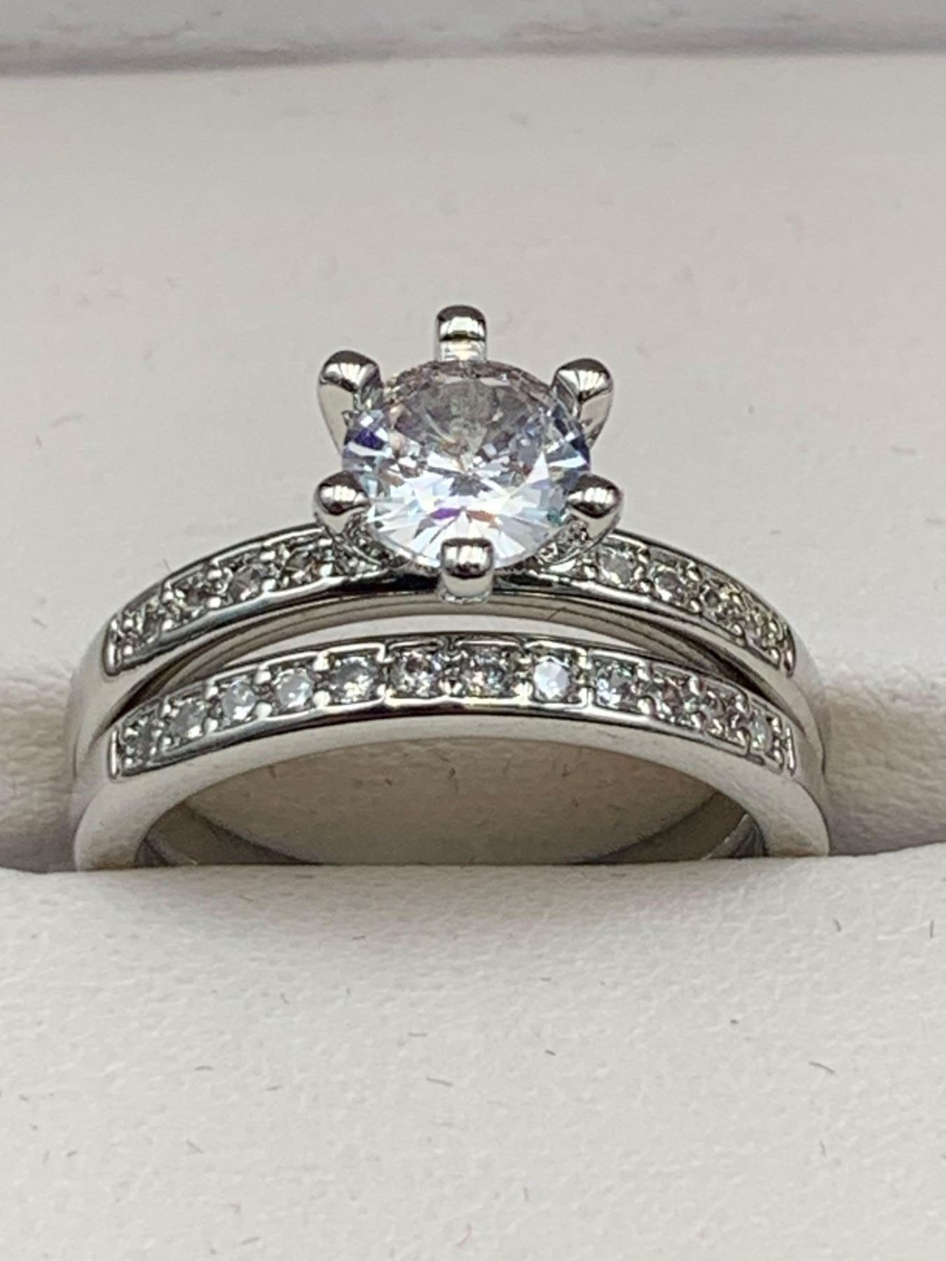 V.Wang Style Double Engagement/Wedding Ring 1.0 Carat Solitaire Bezel Band Set Size 7