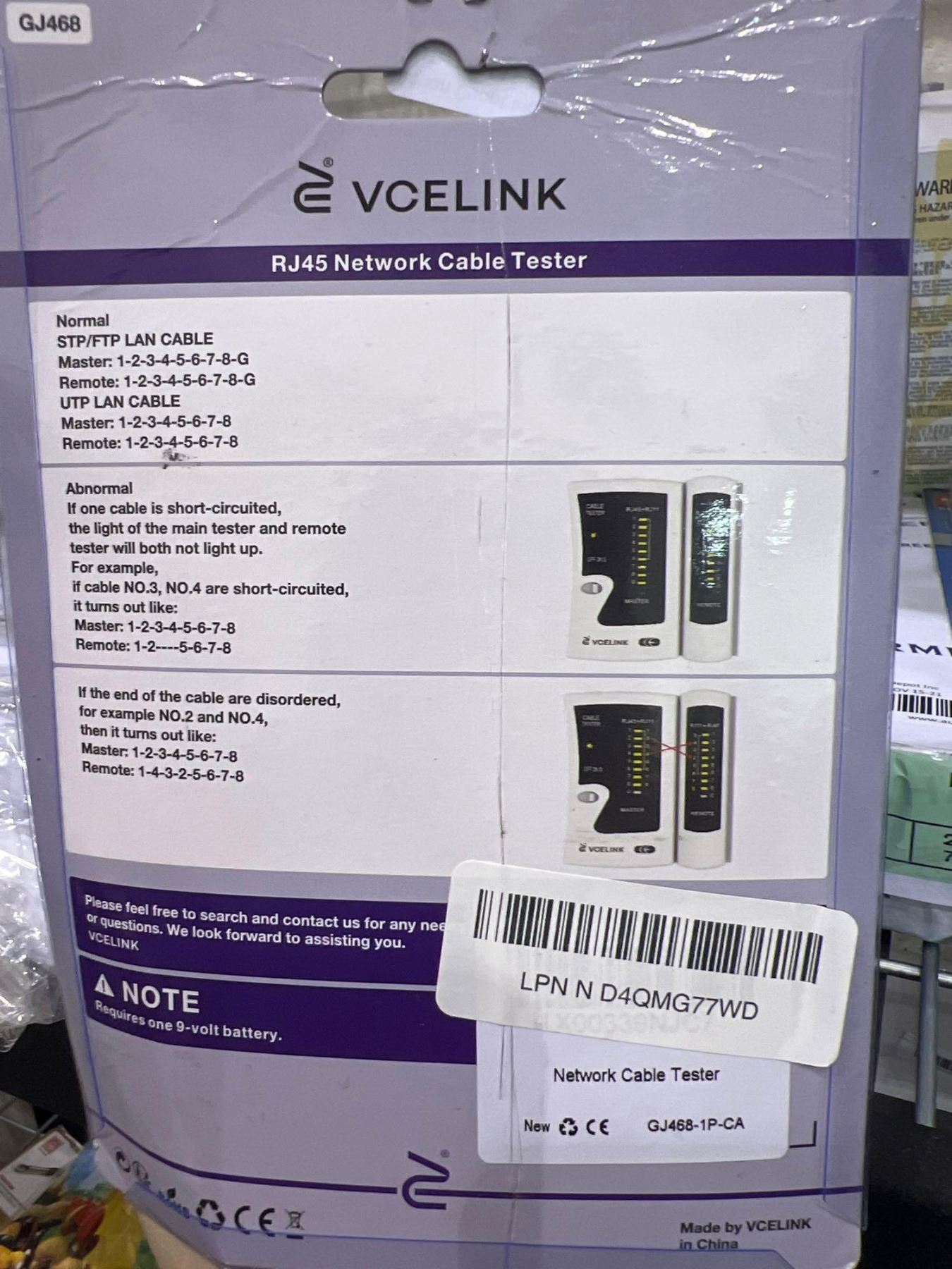VCELINK  RJ45 Network Cable Tester