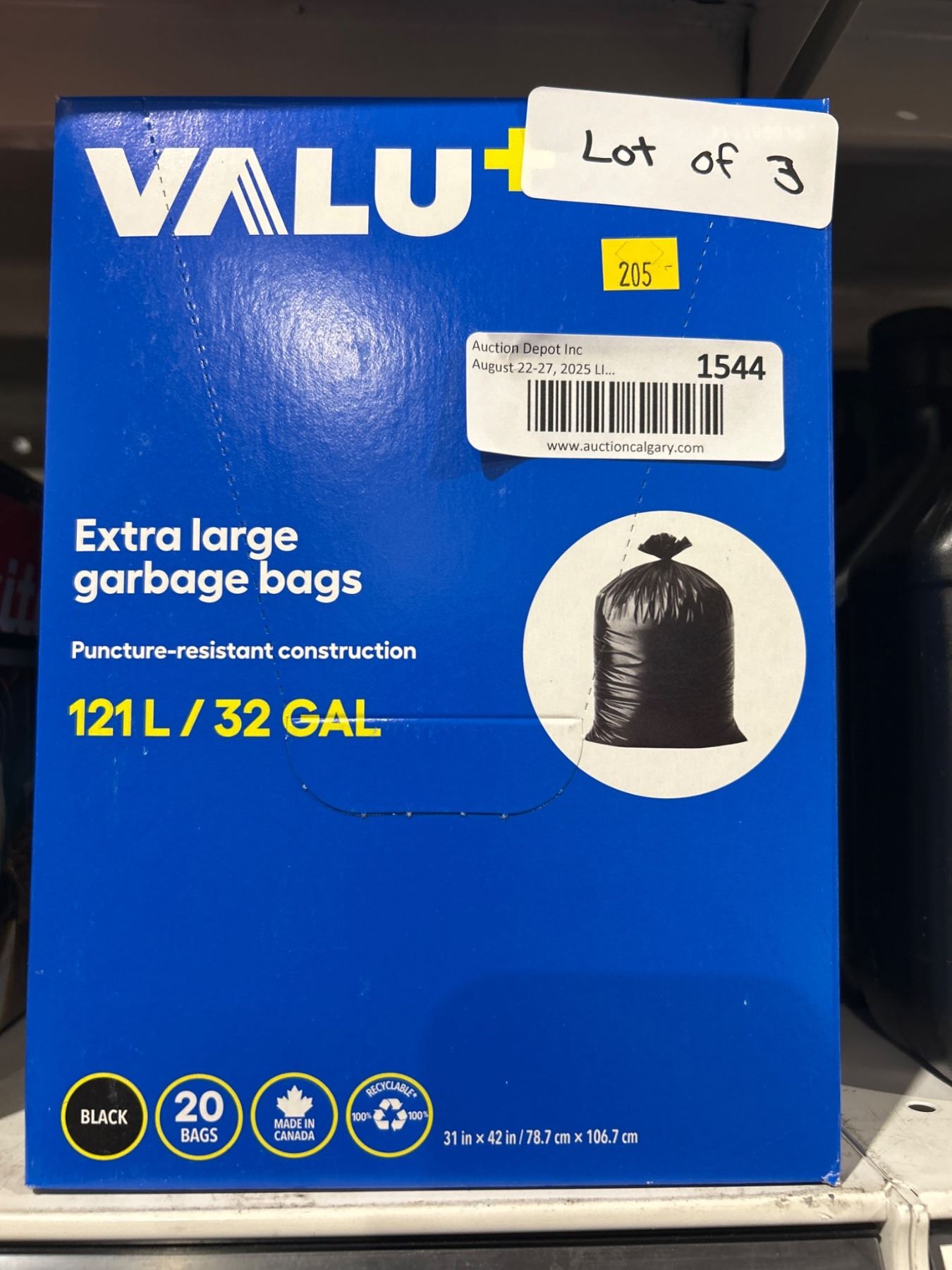 ValuPlus Extra Large Garbage Bags, 121L, Lot of 3