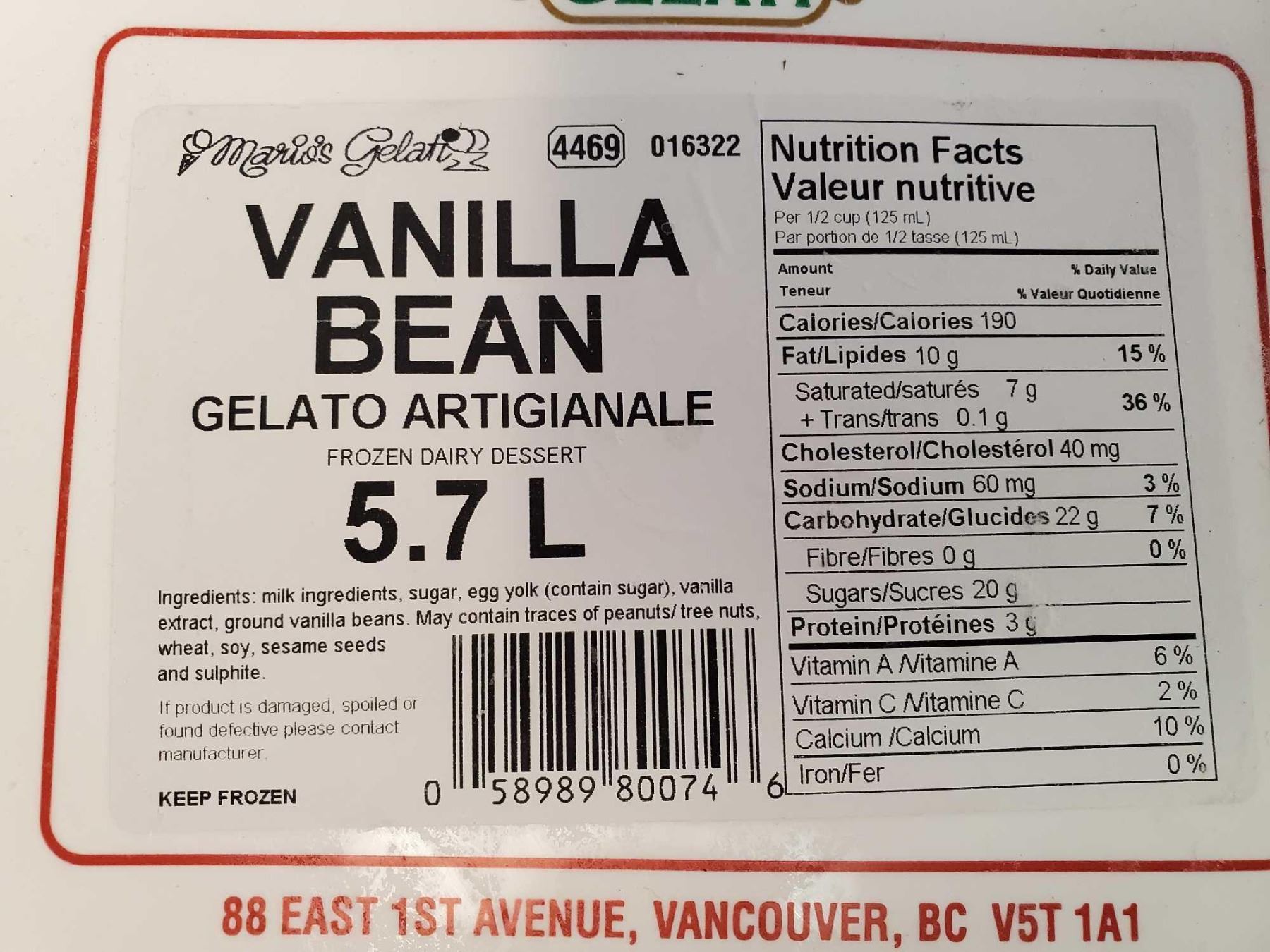 Vanilla Bean Gelato Artigianale 5.7L