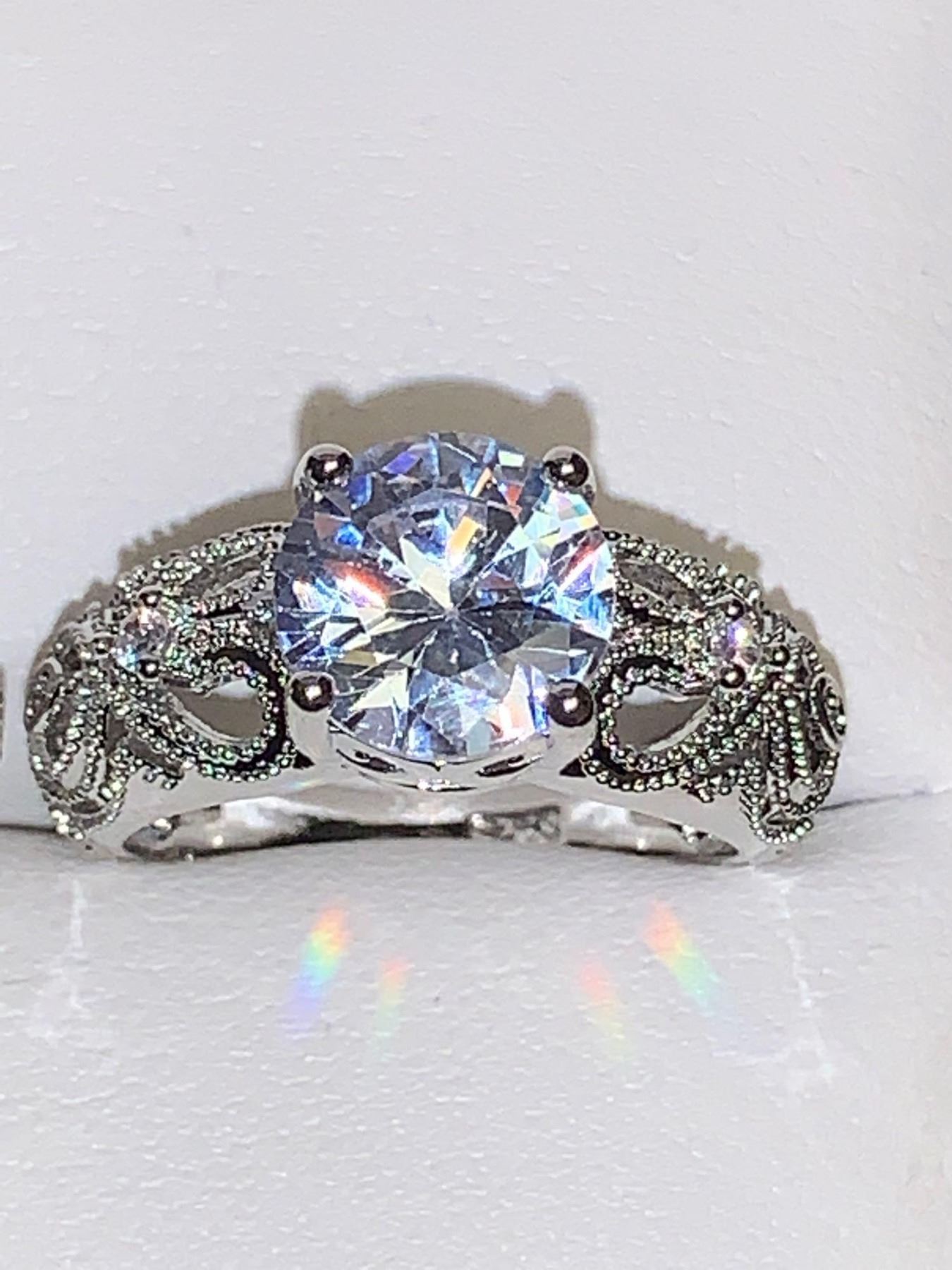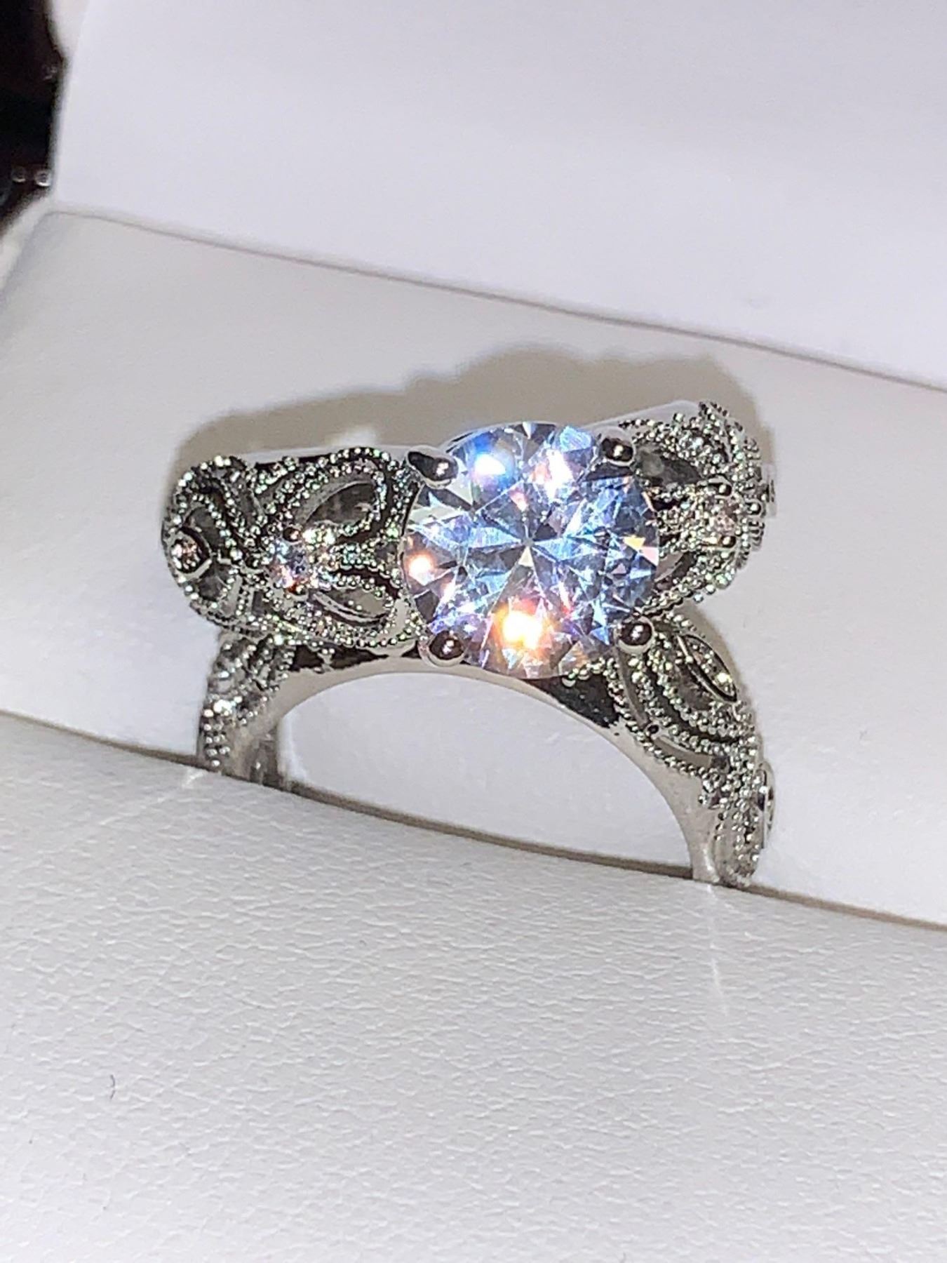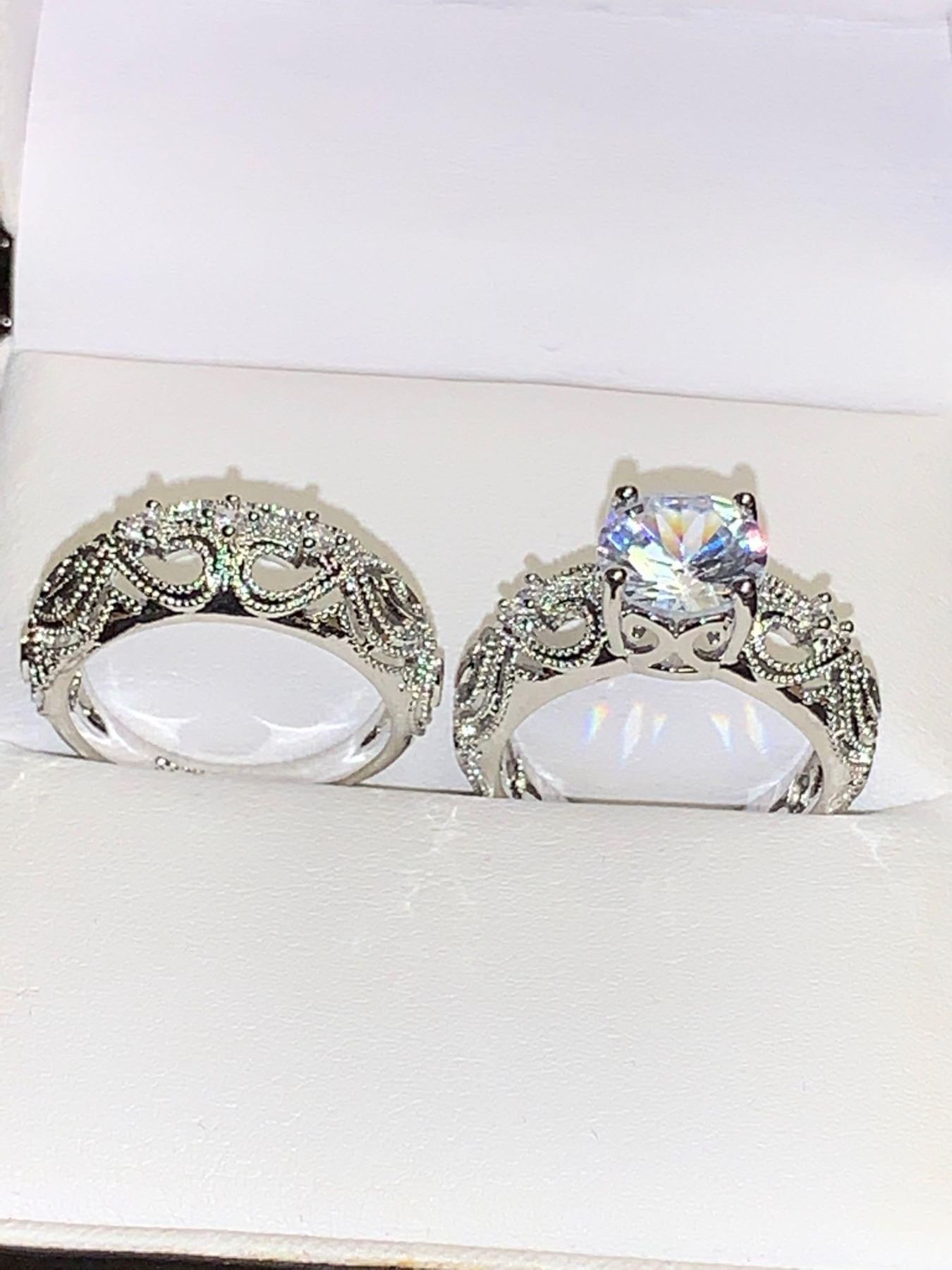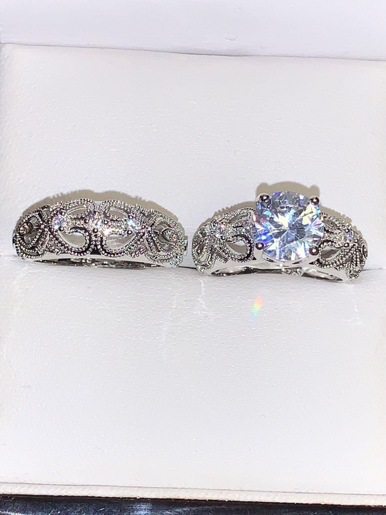 Vera Wang Styled Double Ring Wedding & Engagement Set with Round Cut 1.0 Carat Solitaire Engagement Ring and matching band size 7