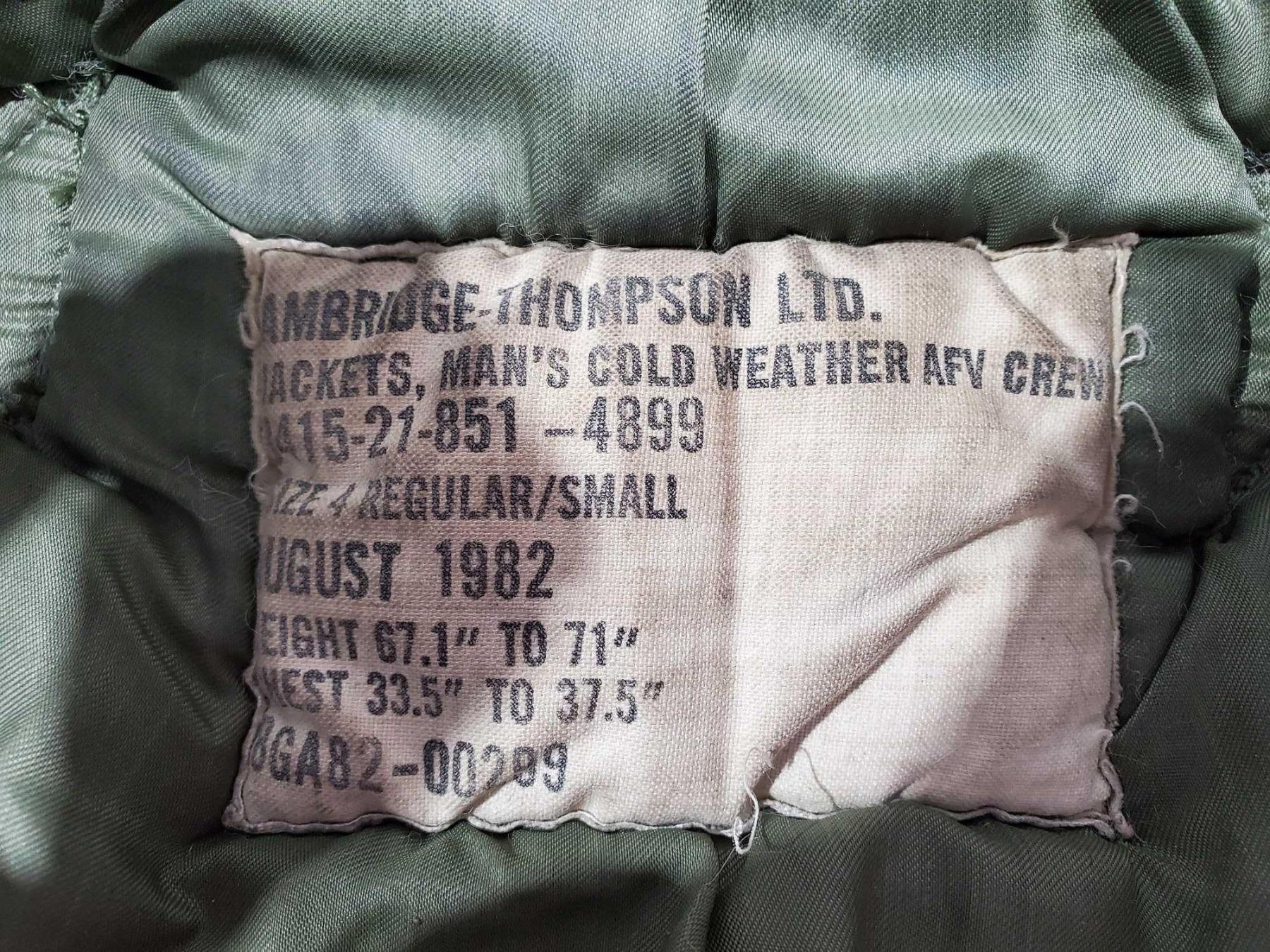 Vintage Authentic Canada Armed Forces Mens Cold weather AFV Crew Jacket circa 1982 Small