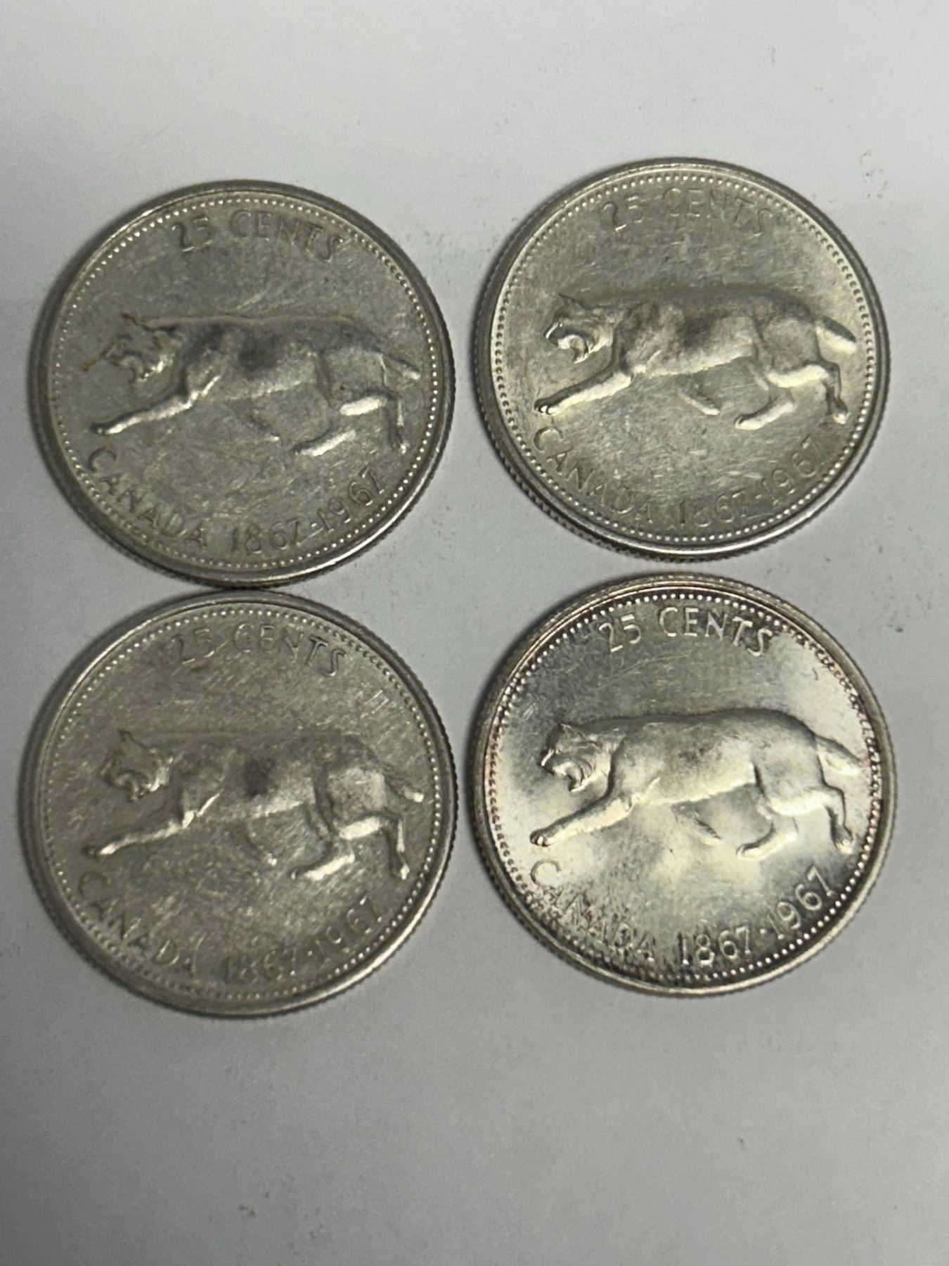 Vintage Canada 1867-1967 Lynx Silver Centennial Quarters - LOT of4