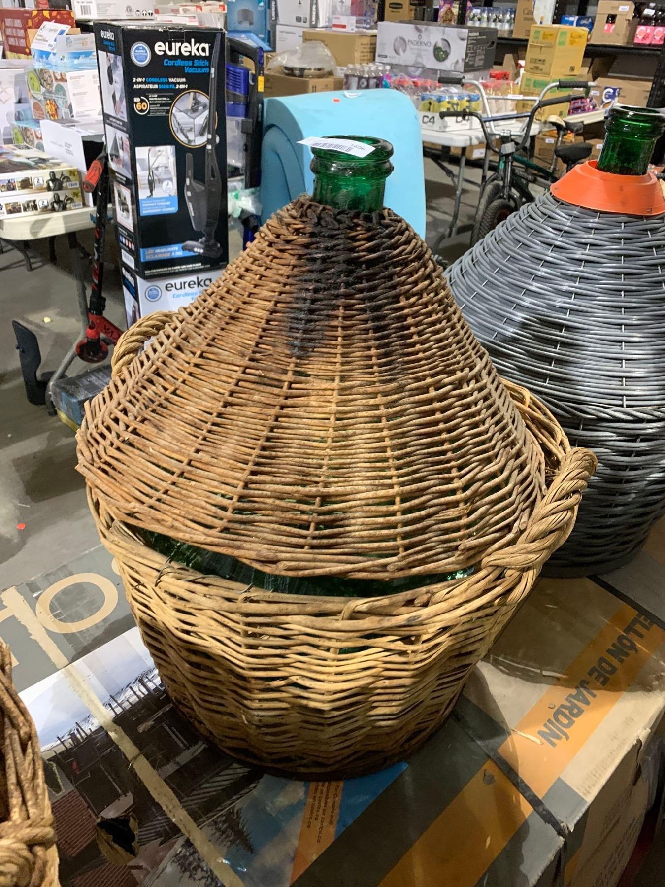 Vintage Large Glass Demijohn "Bonbonne" Wicker Wine Bottle