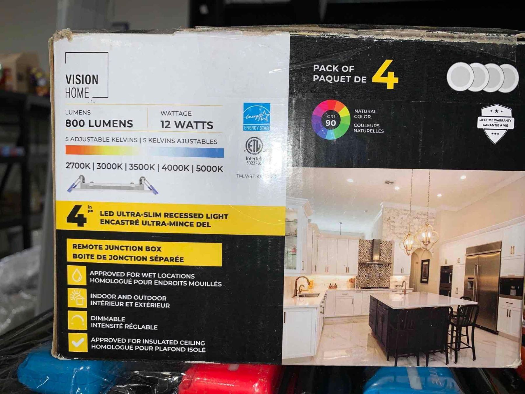 Vision Home 800 Lumens 4" LED Ultra Slim Recessed Light 4 Pack