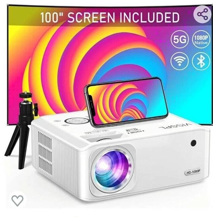 Visspl 5G Native 1080P Projector / WiFi/BlueTooth Indoor/Outdoor Hi-Fi Stereo Sp