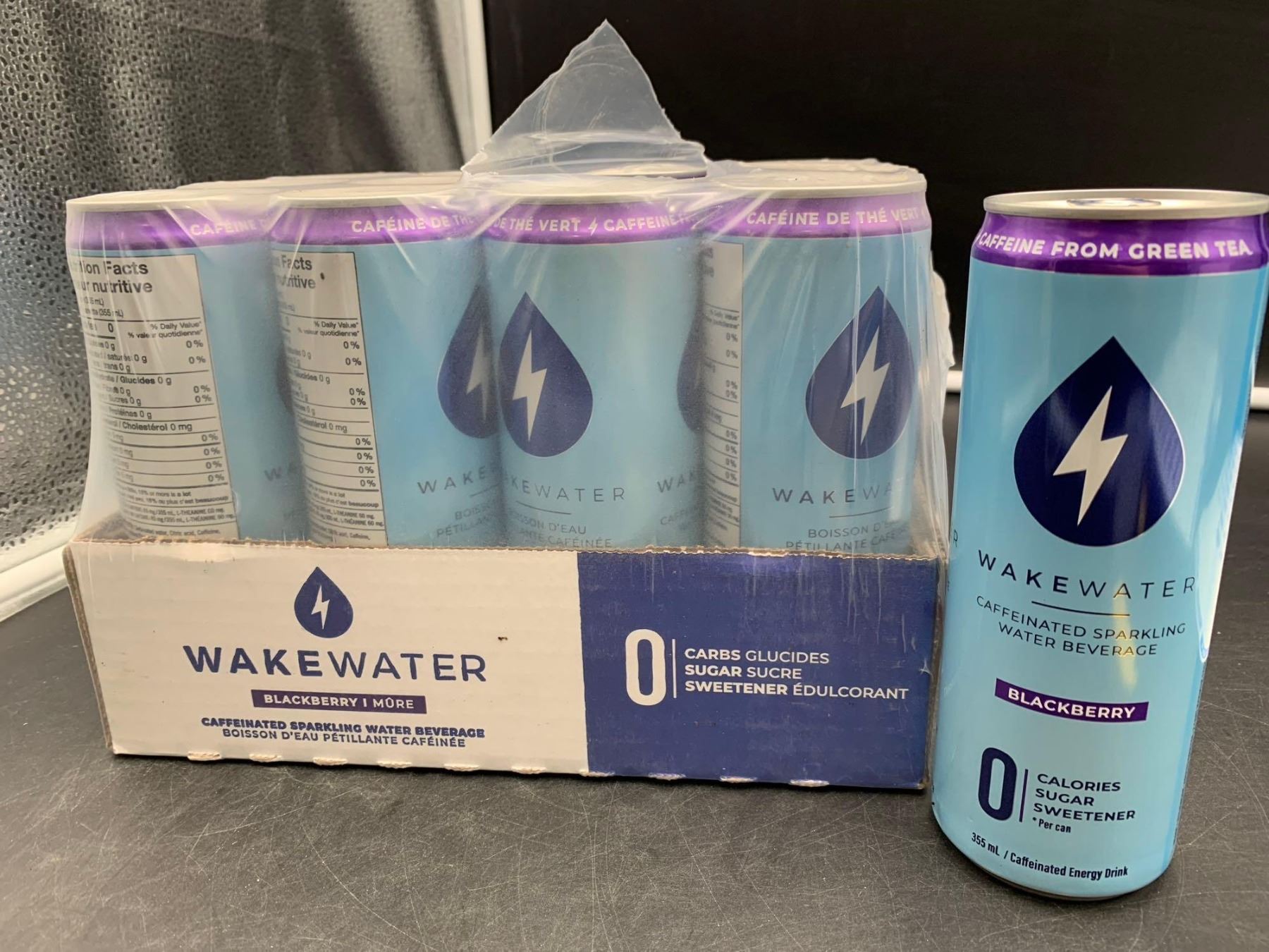 Wake Water Caffeinated Sparkling Water Beverage-Blackberry (12 x 355ml)