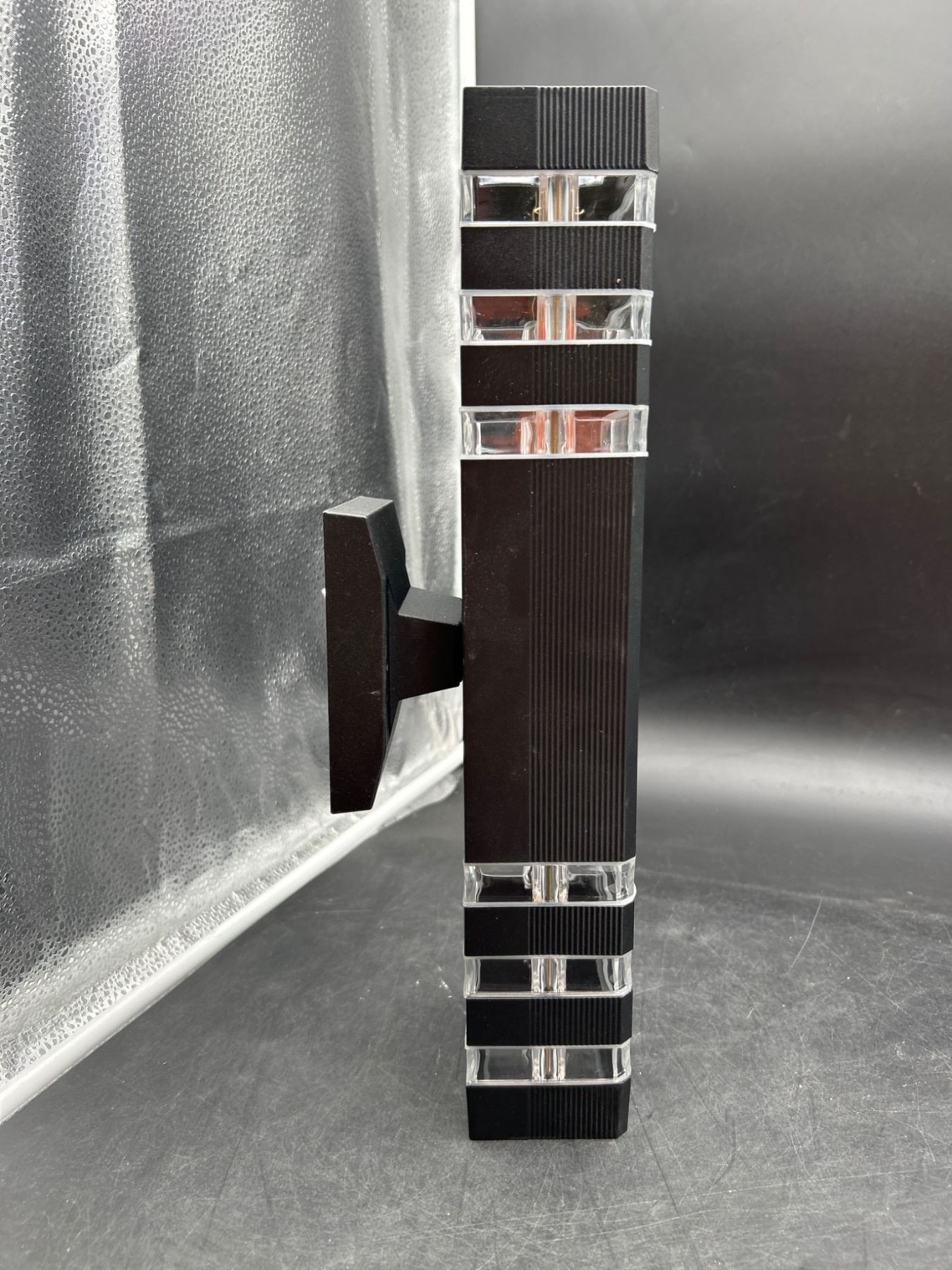 Wall-Mounted Vertical Light Fixture With Black and Clear Accents