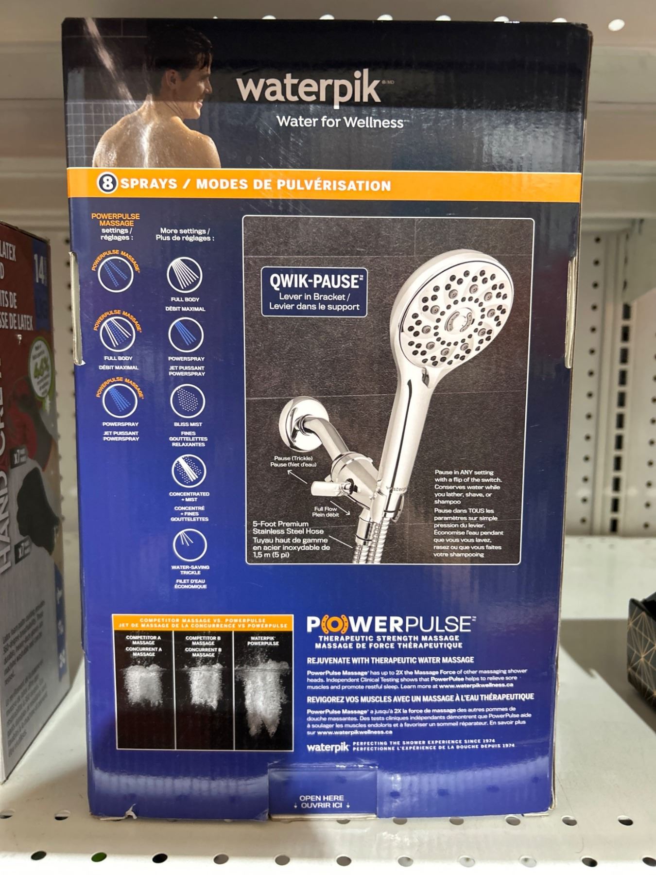 Waterpik PowerPulse Therapeutic Strength Shower Head with 8 Spray Settings