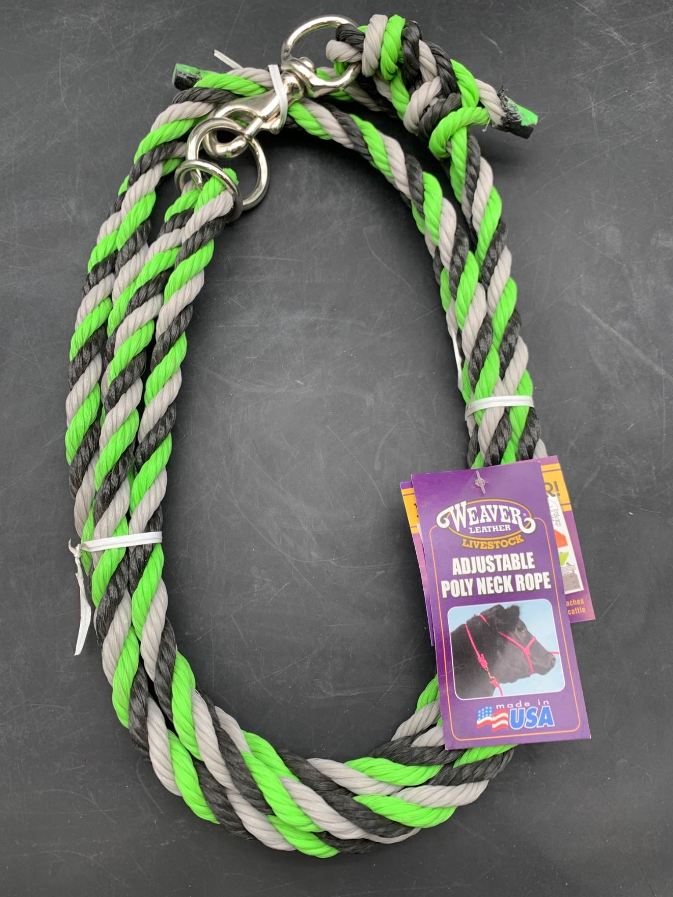 Weaver Livestock Adjustable Poly Neck Rope, Lime/Black/Gray, Model 35-4040-H44