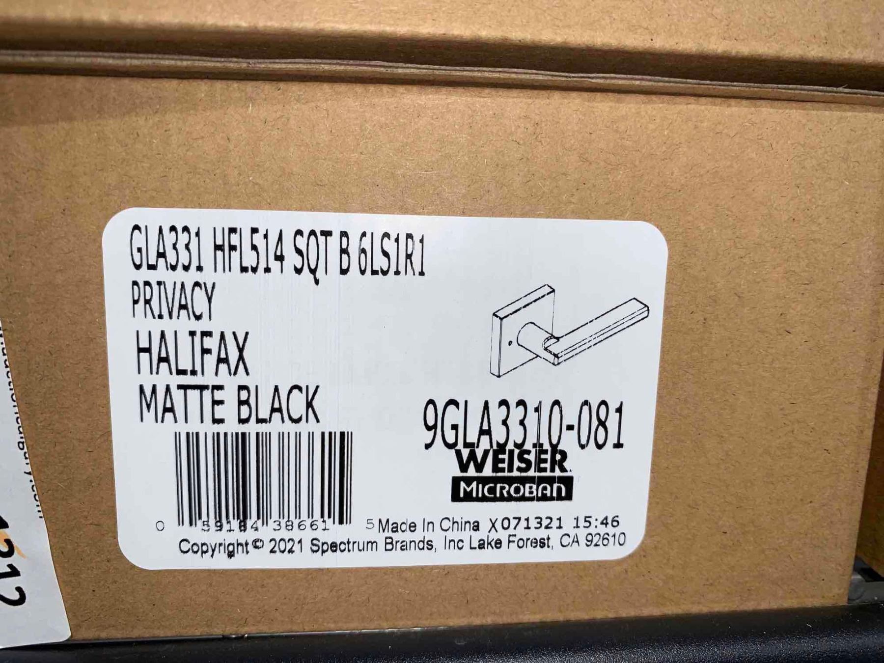 Weiser Halifax Privacy Door Handle - Matte Black