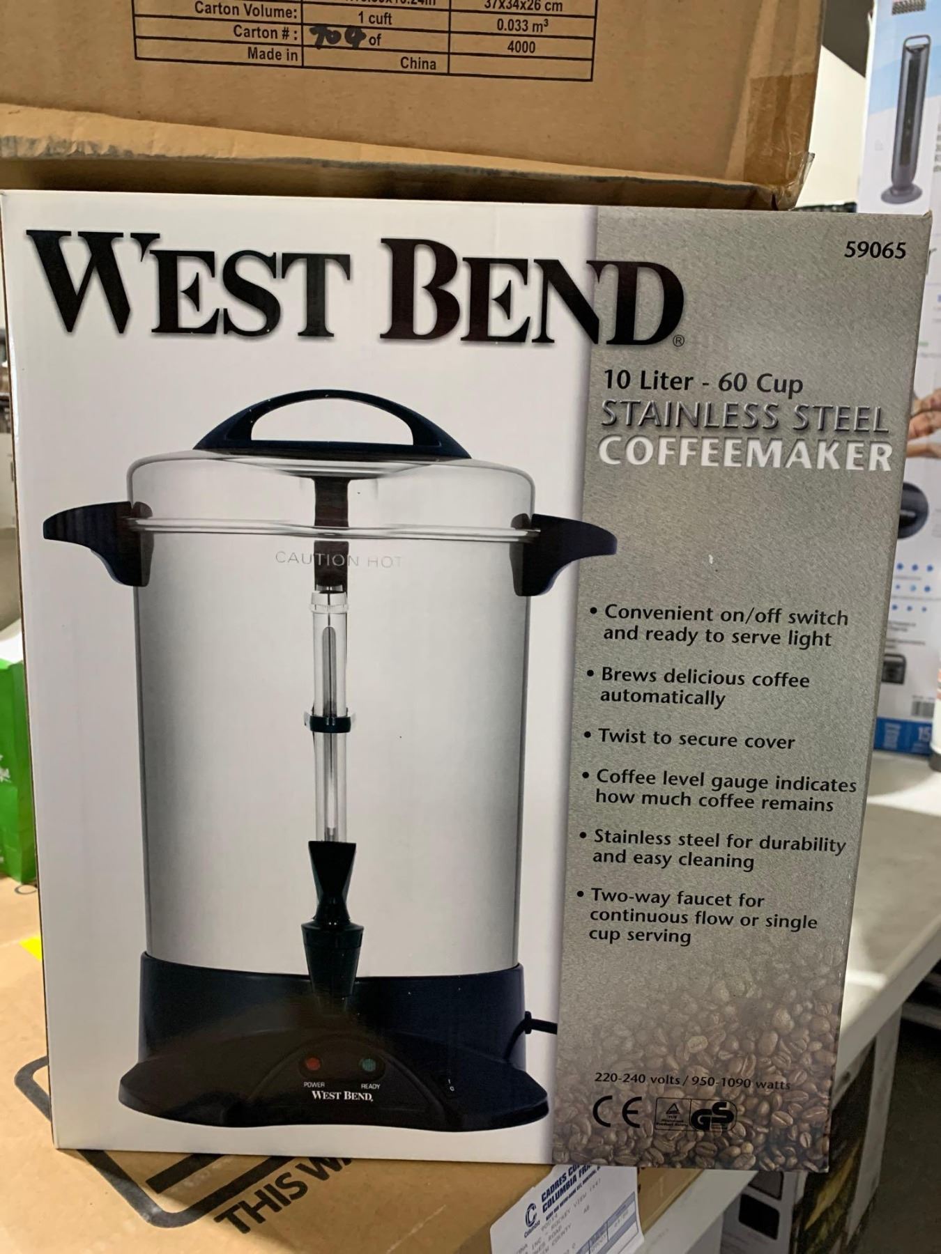 West Bend 10L - 60 Cup Stainless Steel Coffee Maker 220-240Volt