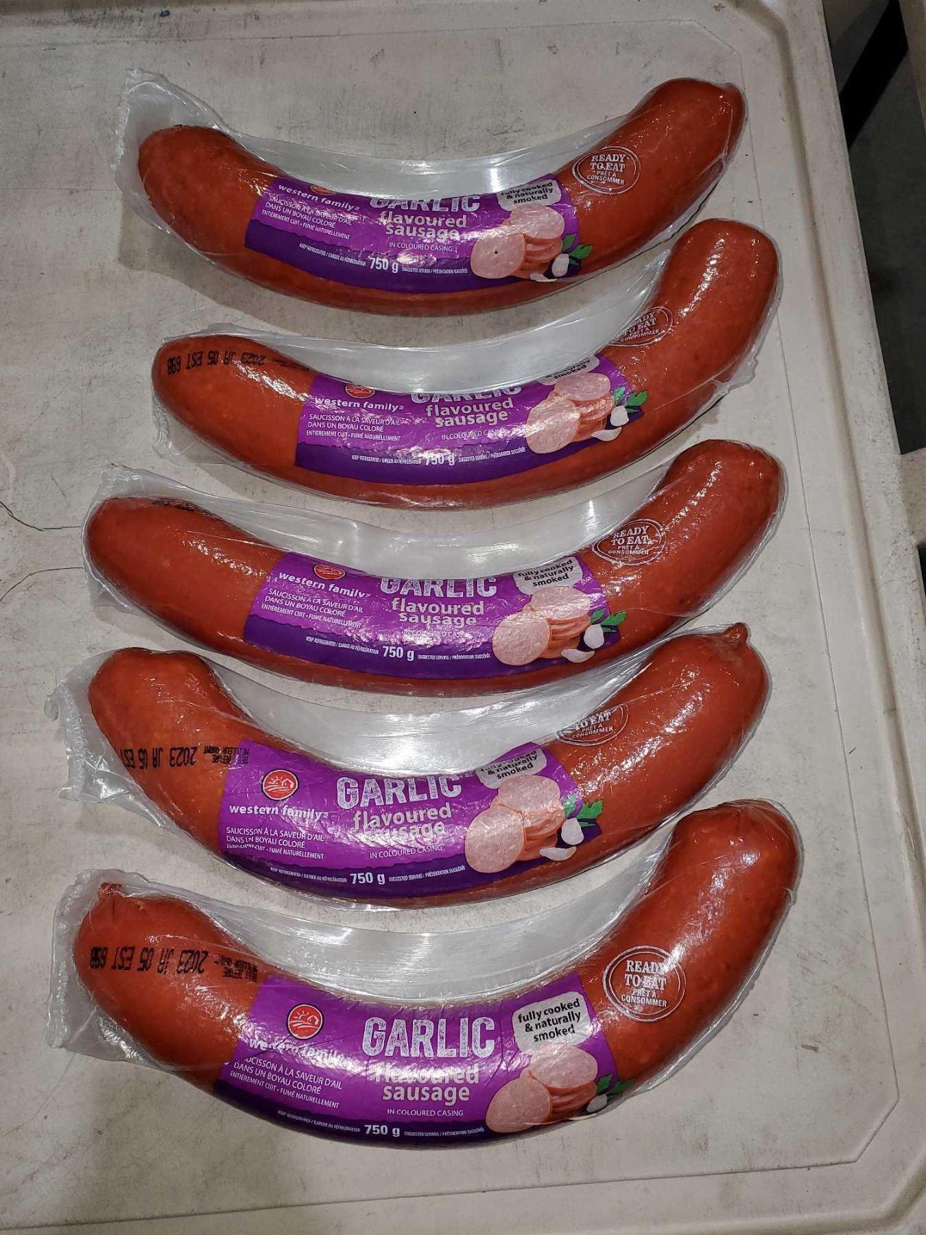 Western Family Fully Cooked Garlic Flavored Sausage 5x750g