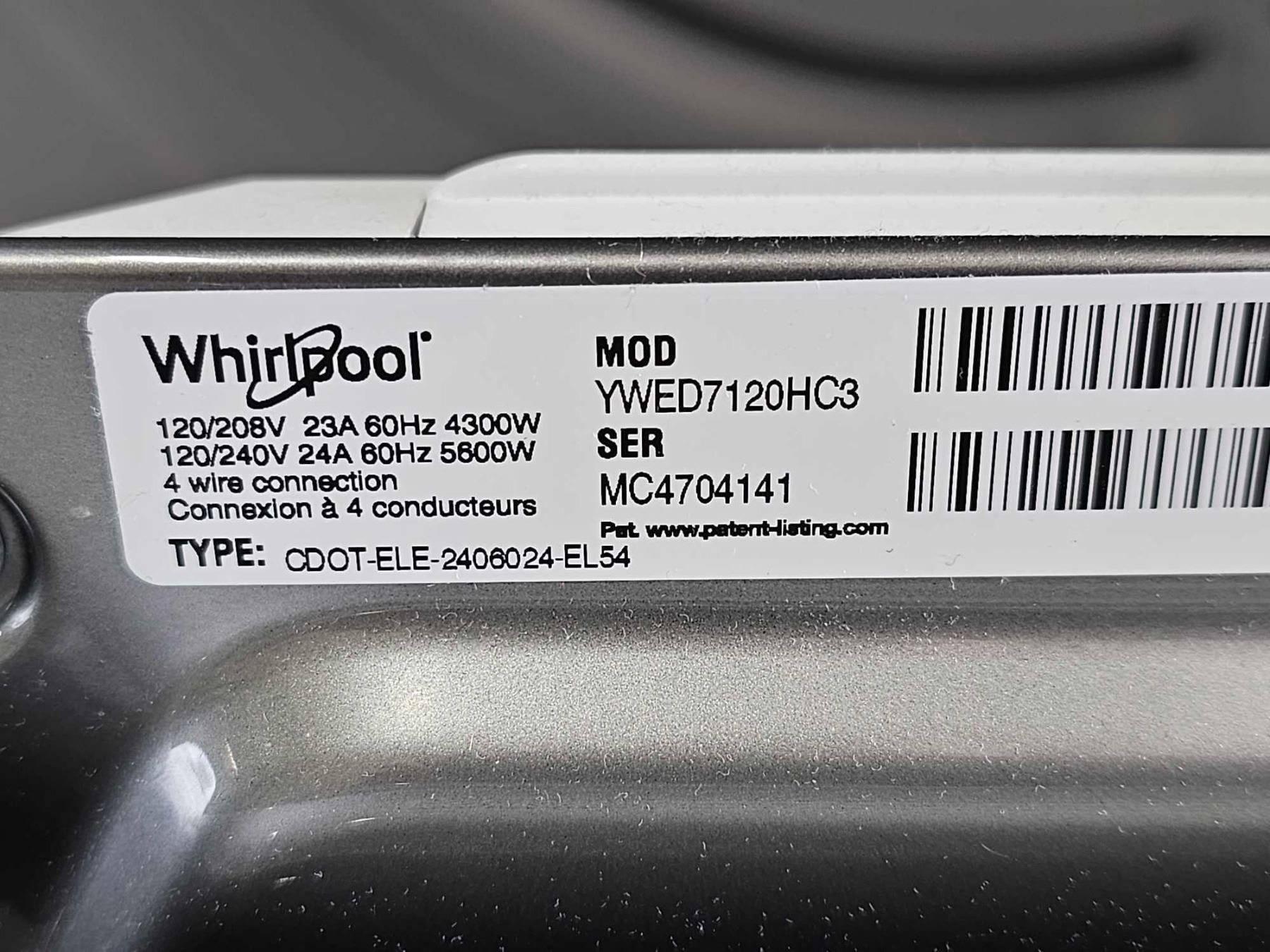 Whirlpool YWED7120HC3   7.4 cu. ft. Smart Top Load Electric Dryer