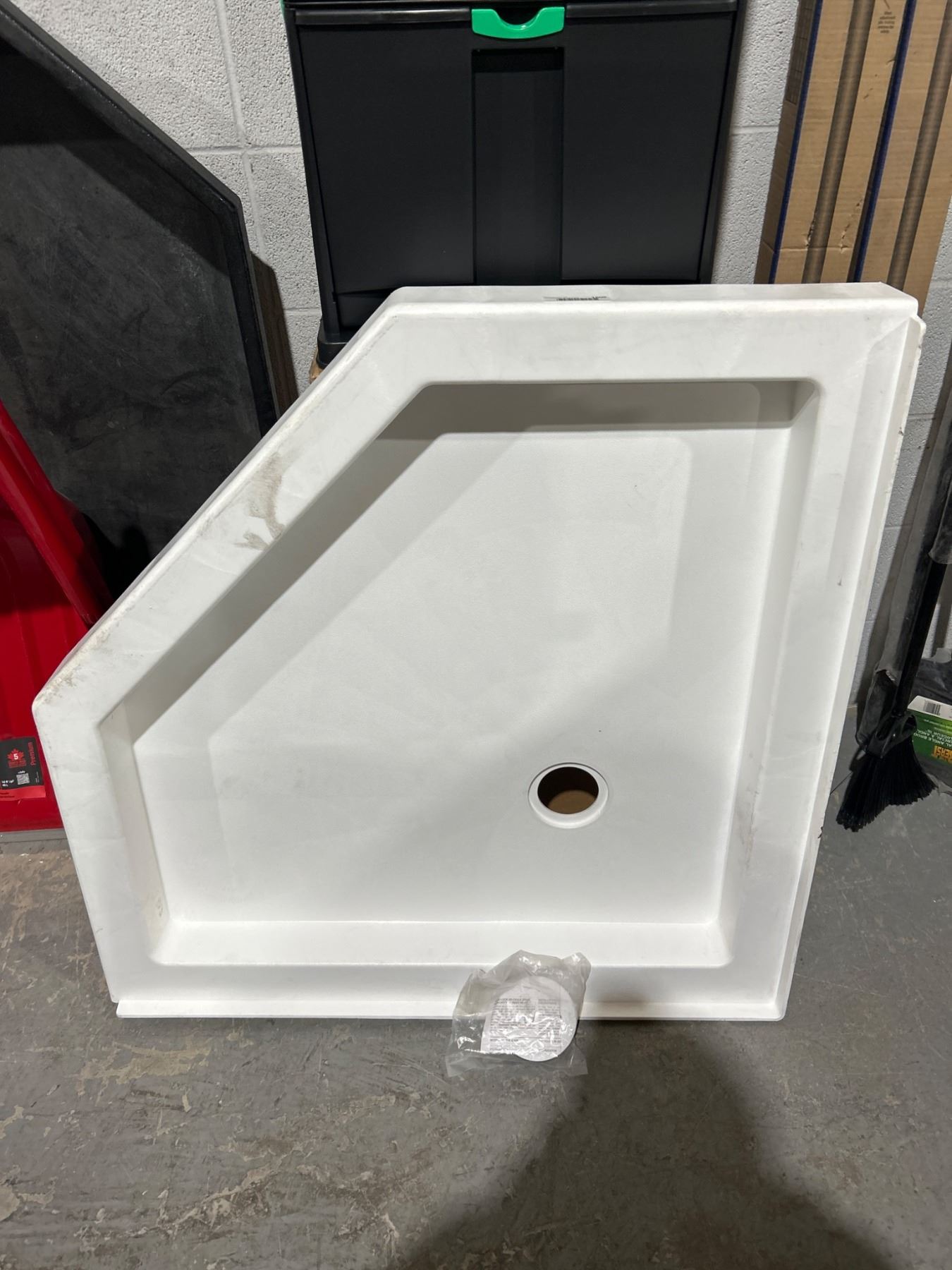 White Rectangular Shower Pan with Corner Drain