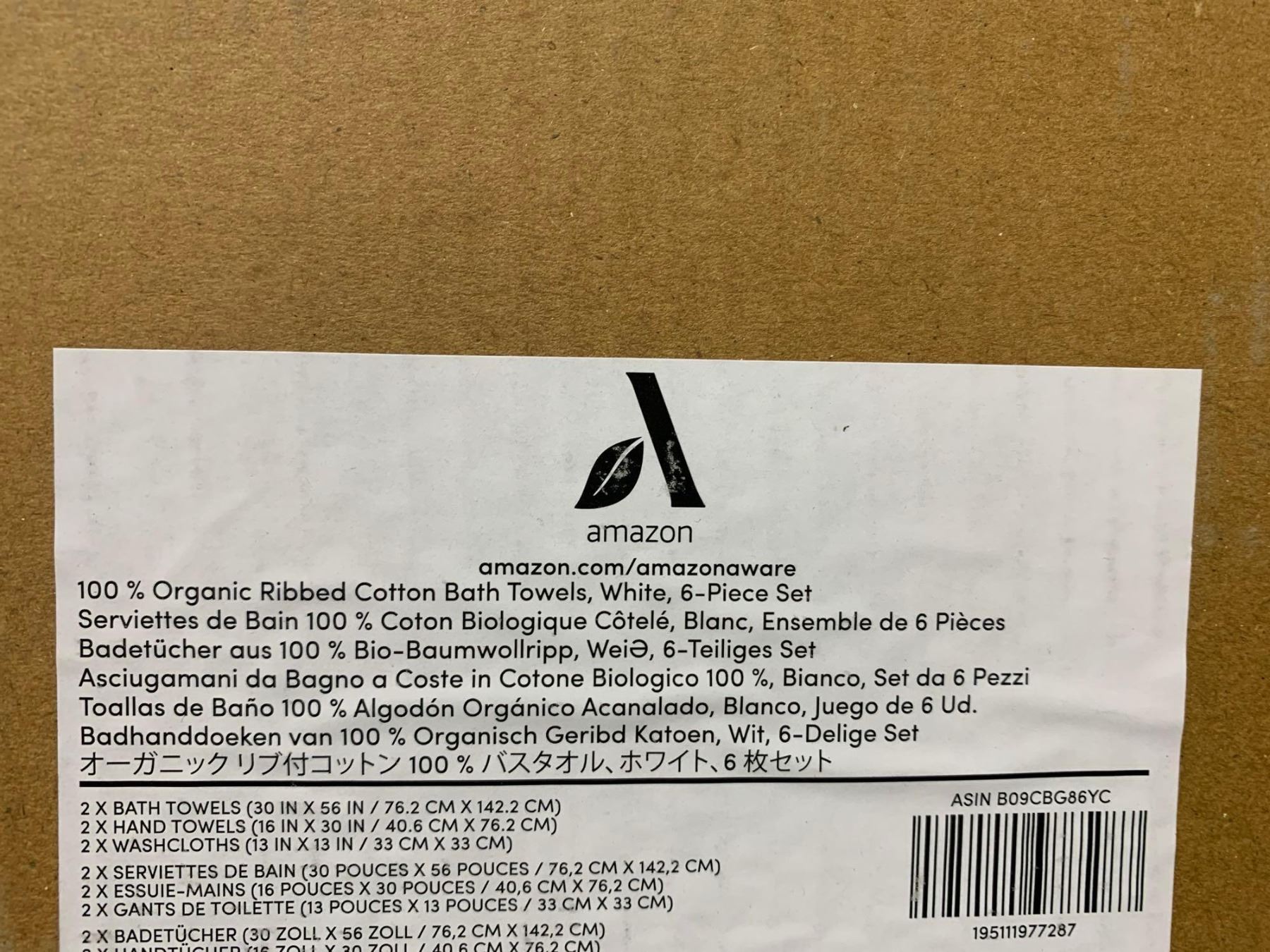 White organic cotton 6 piece bath towel set