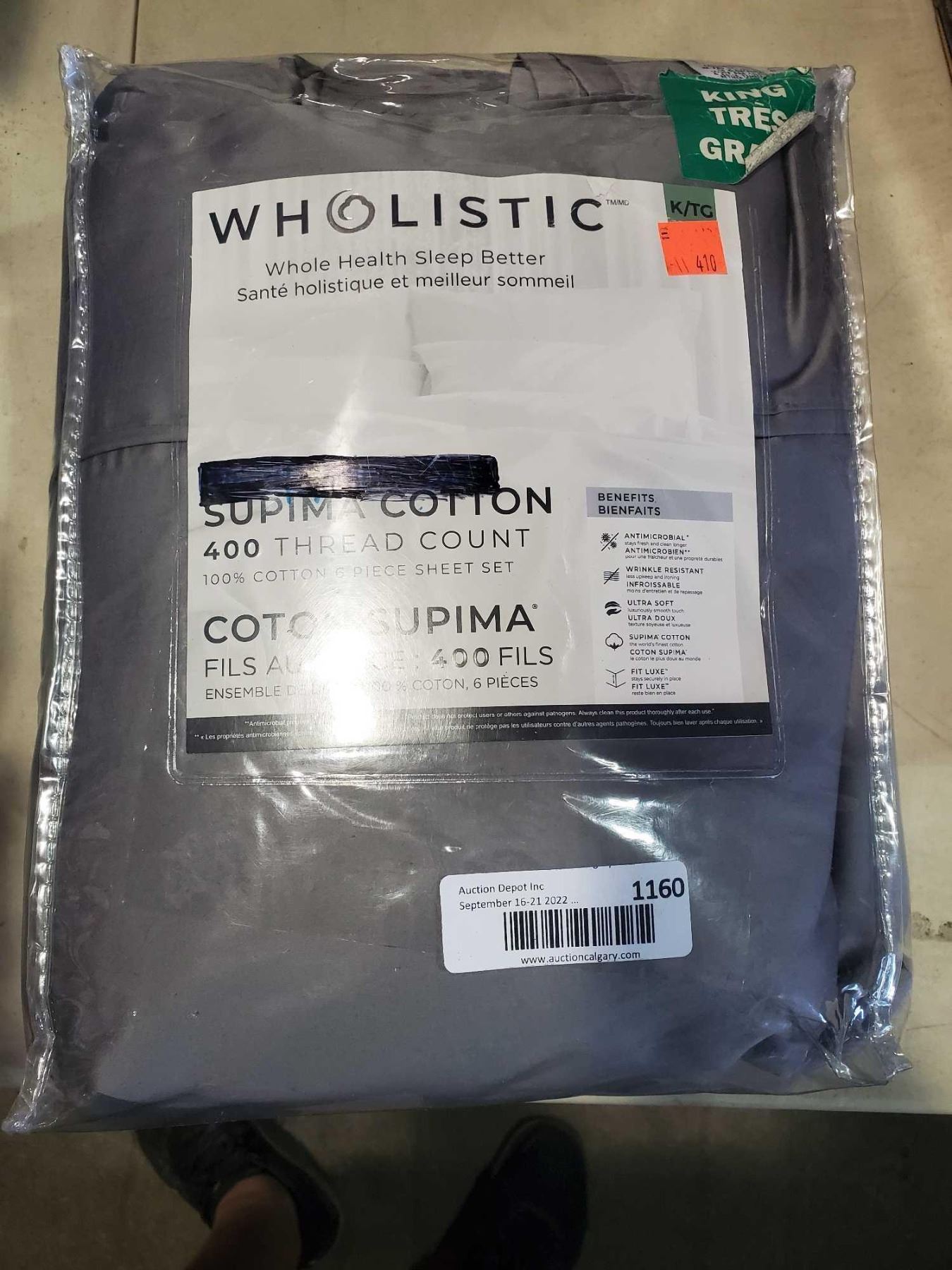 Wholistic Supima Cotton 400 Thread Count 6 Pc Sheet Set - King Size - OPEN BOX - SOLD AS IS