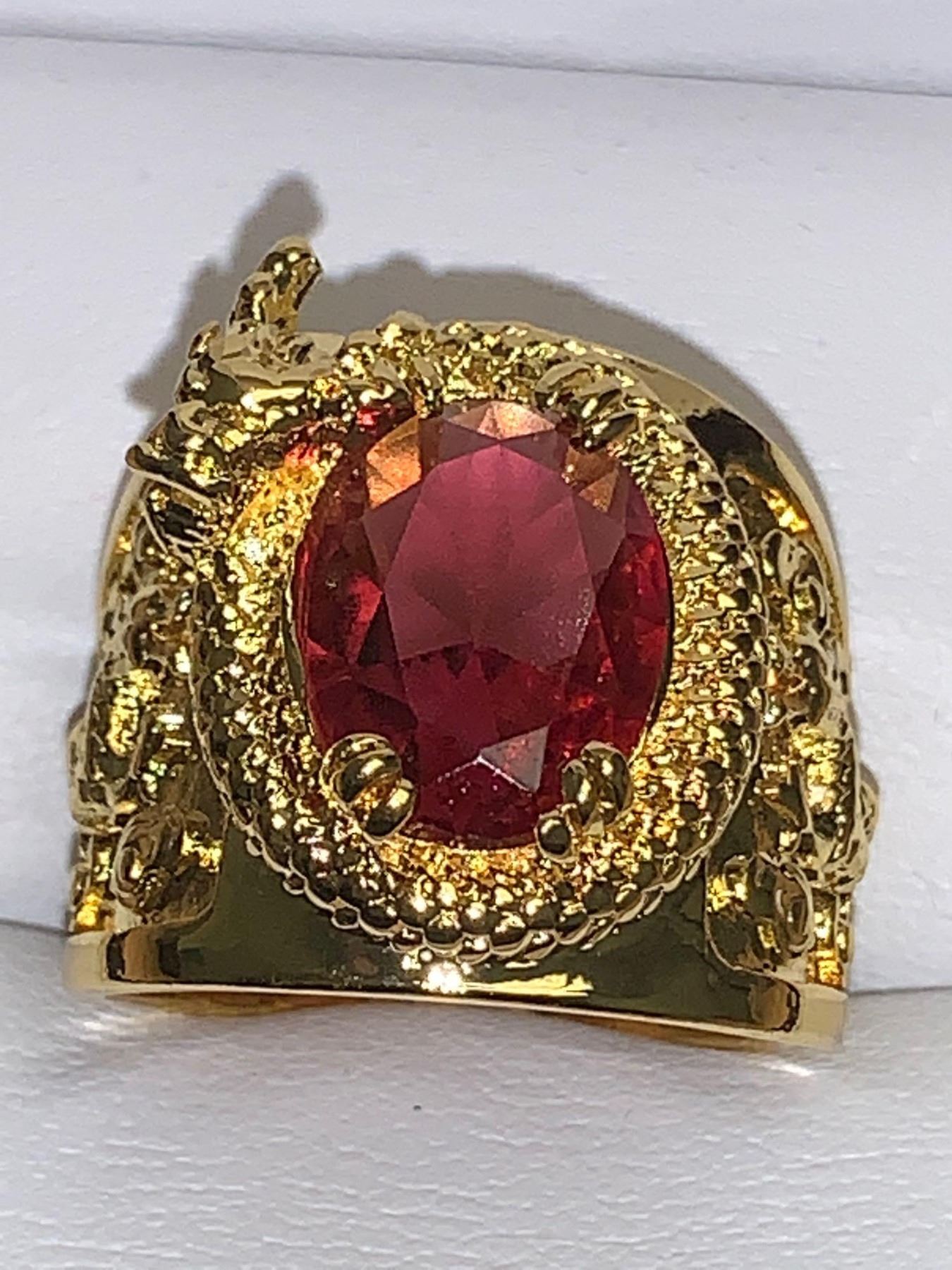 Wide band 14K GP Dragon Sculpted Ring with 1.2 carat Oval Cut Ruby Topaz Stone ladies size 7-8