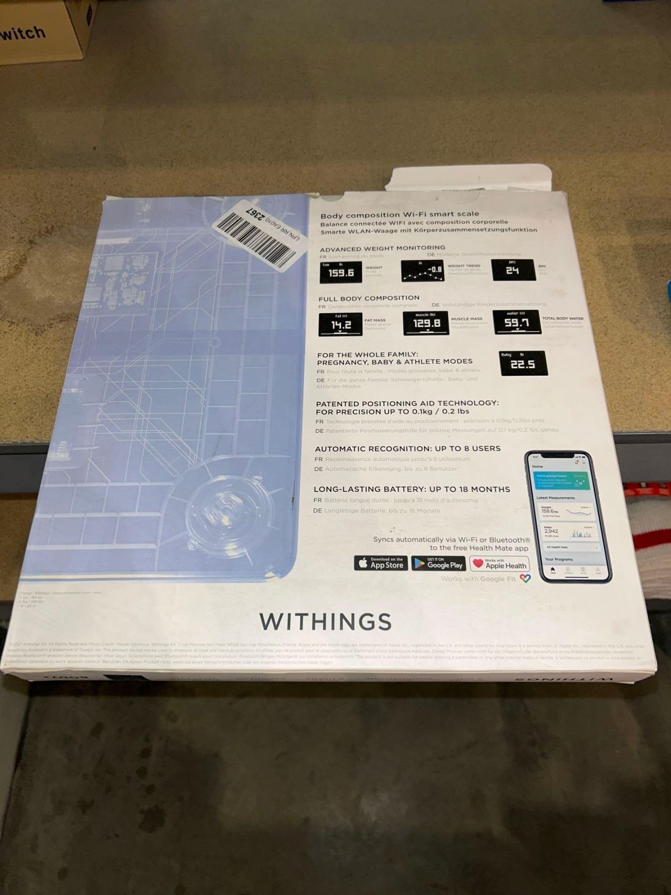 Withings body + smart scale, compatible with smarthpone app