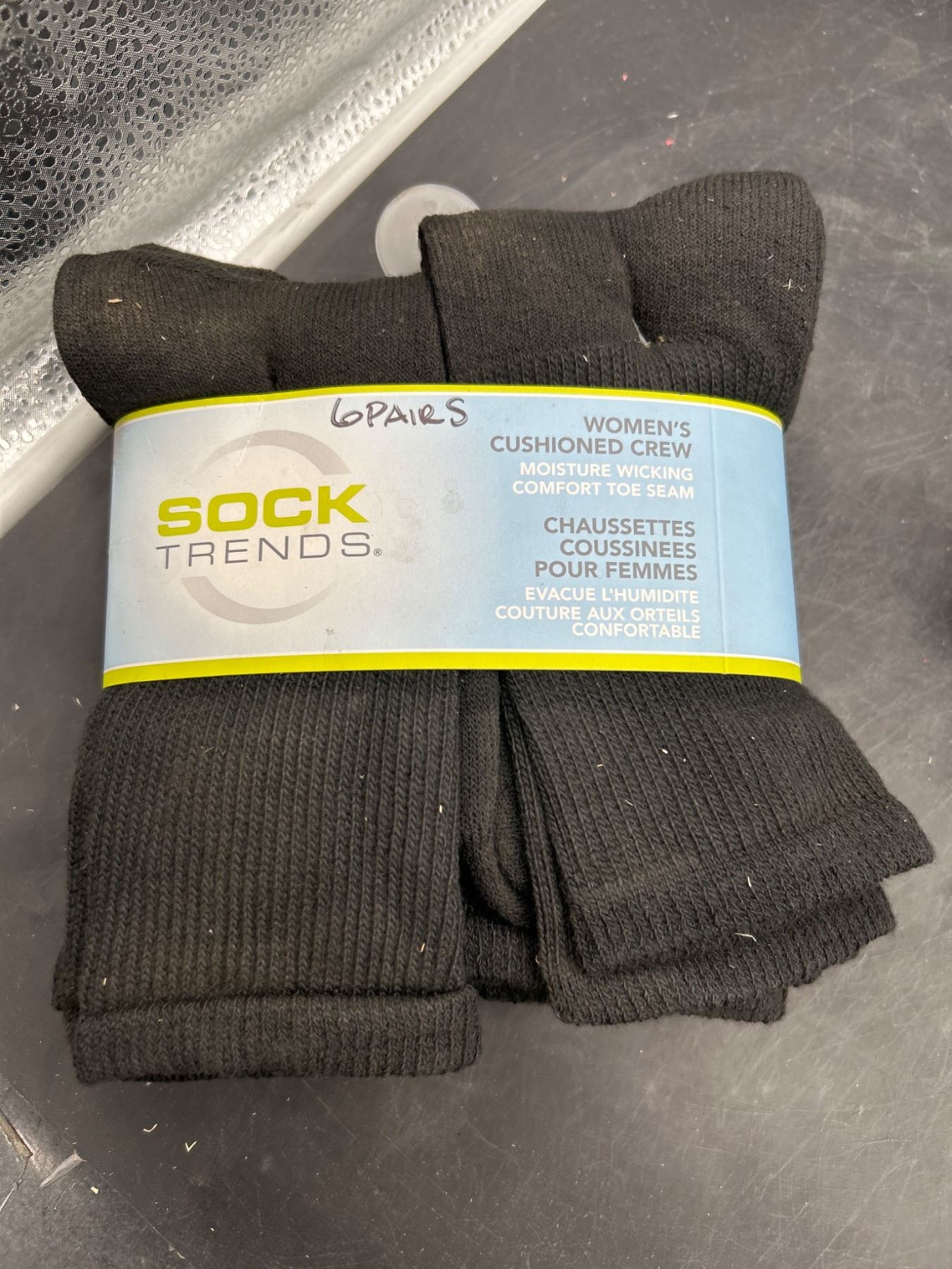 Women’s Cushioned Crew Moisture Wicking Socks, Black, 6 Pairs