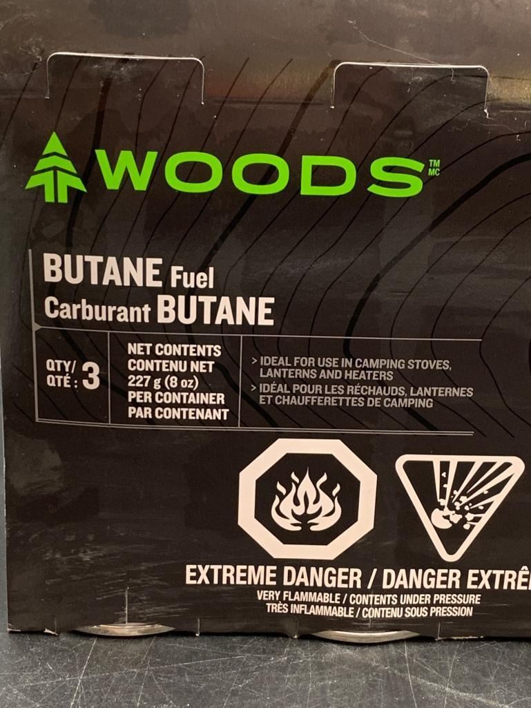Woods Butane Fuel 227g (8 oz) Canisters – Qty 3 – For Camping Stoves