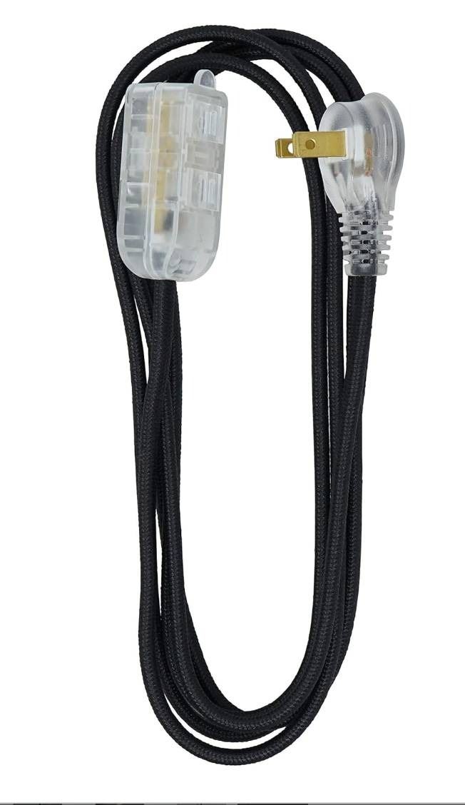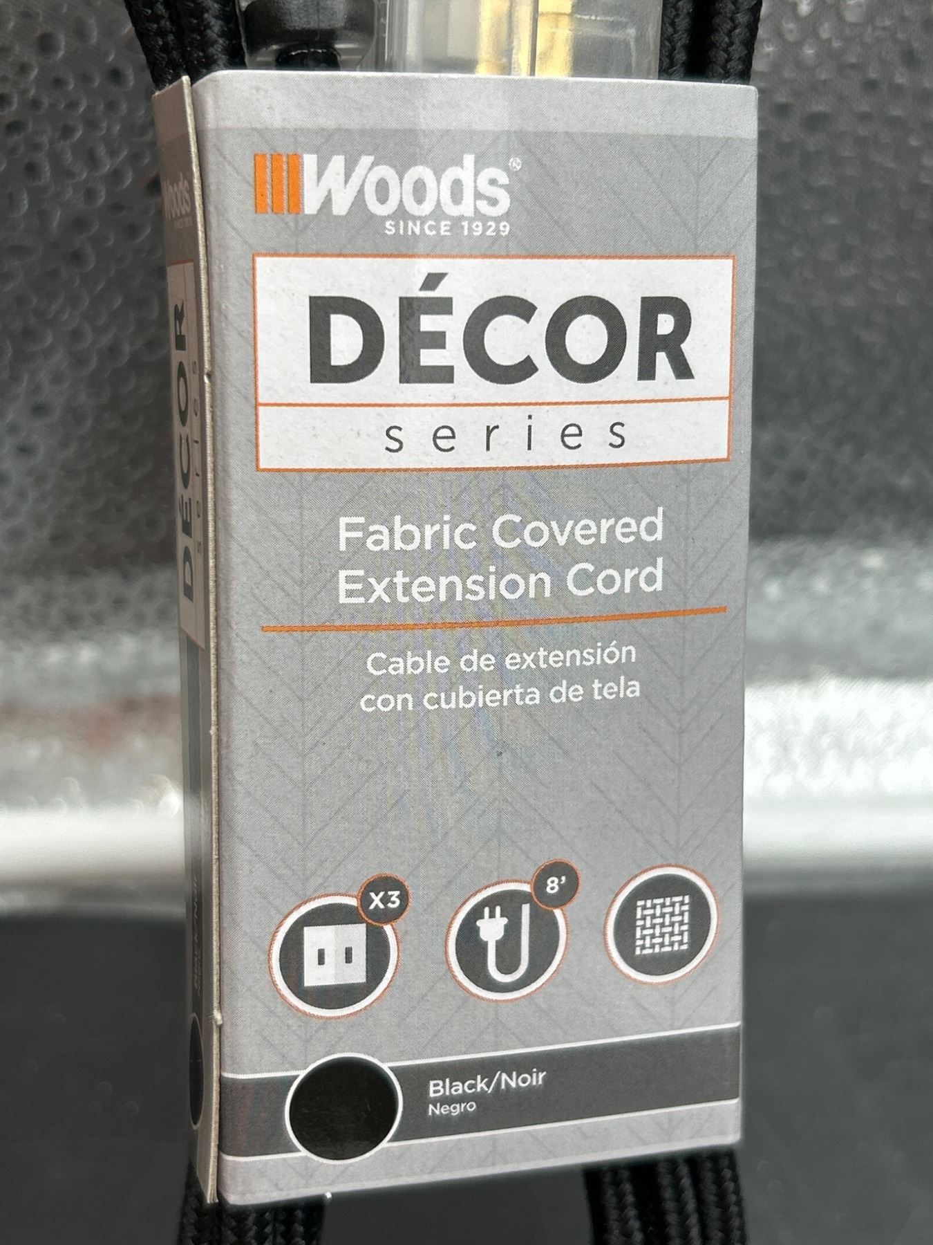Woods Decor Series Fabric Covered 8 ft Extension Cords, Black, Set of 2