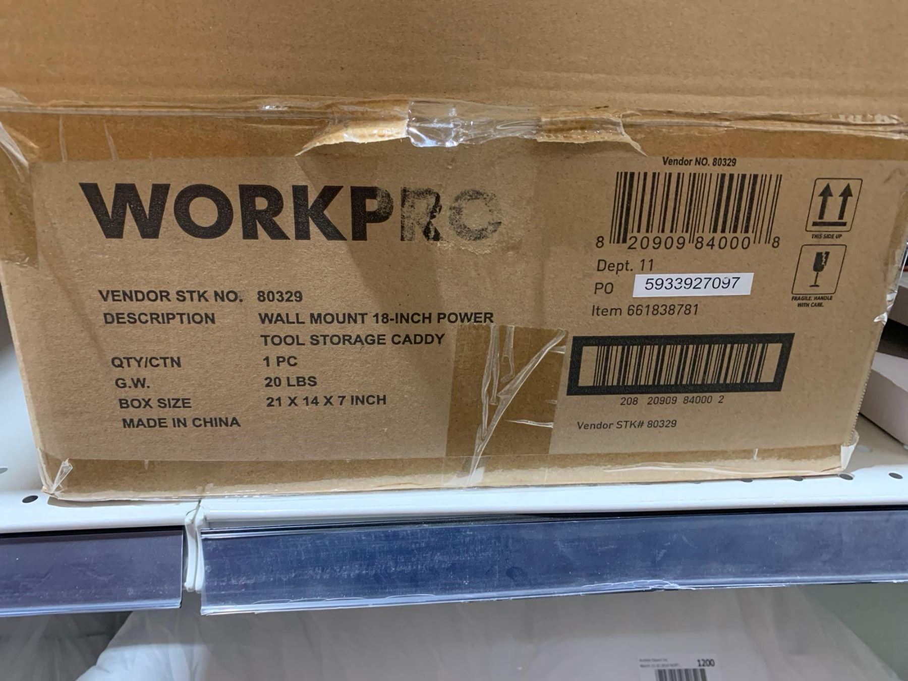 WorkPro wall mount 18" power tool storage caddy