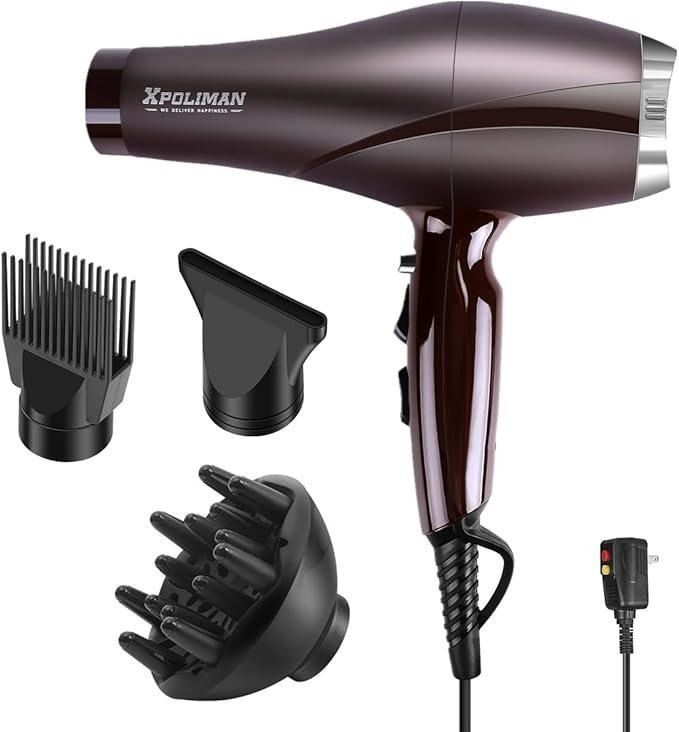 Xpoliman Blow Dryer with Diffuser, 2000 Watt Professional Salon Ionic Hair Dryer for Women with Comb Concentrator, Ease of Use, Hair Blow Dryer with Powerful AC Motor 2 Speed 3 Heat Settings, Low Noise -Brown