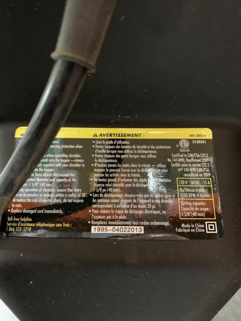 Yardworks Electric Garden Shredder Model 060-3803-0 With Two Wheels