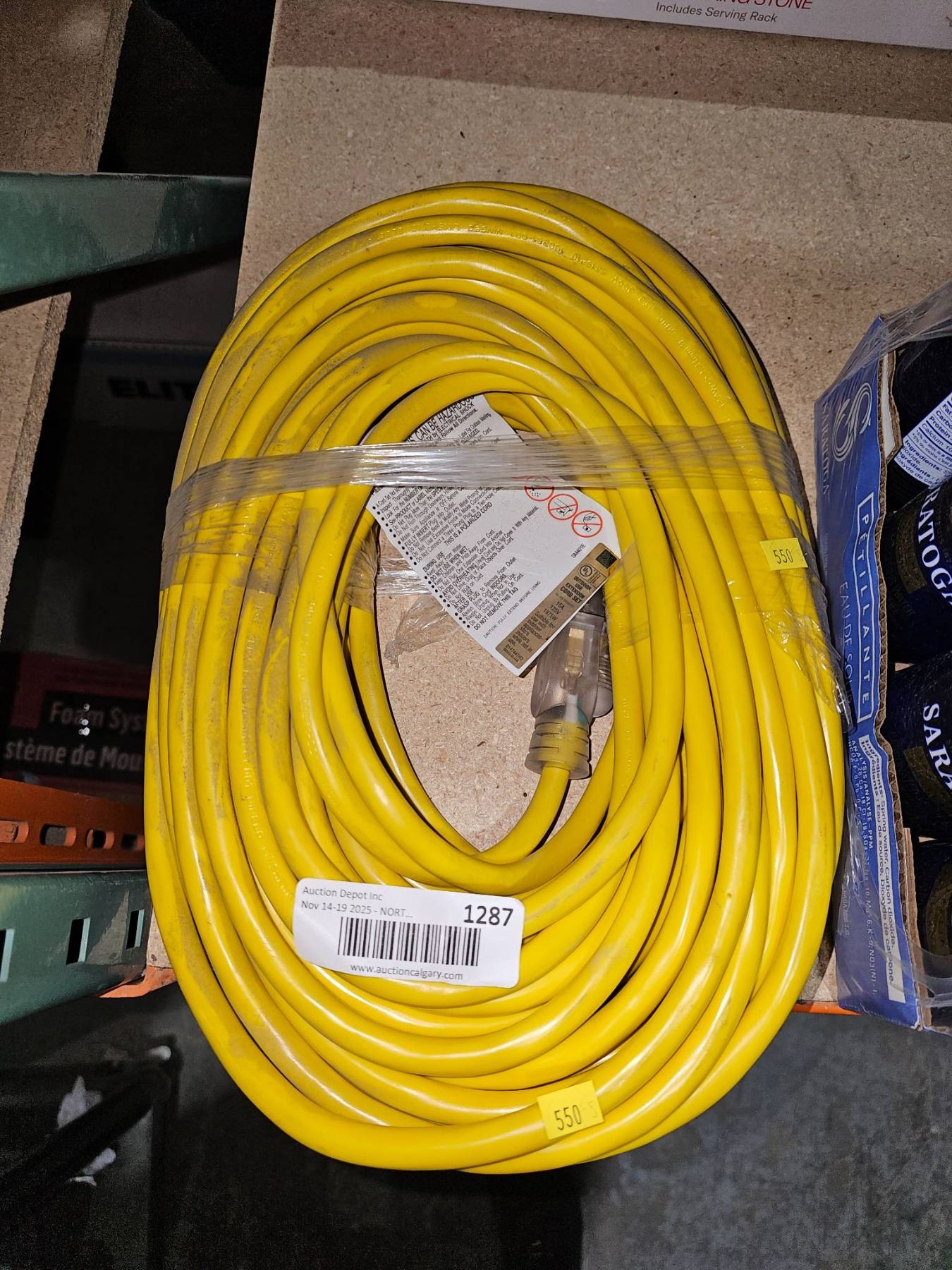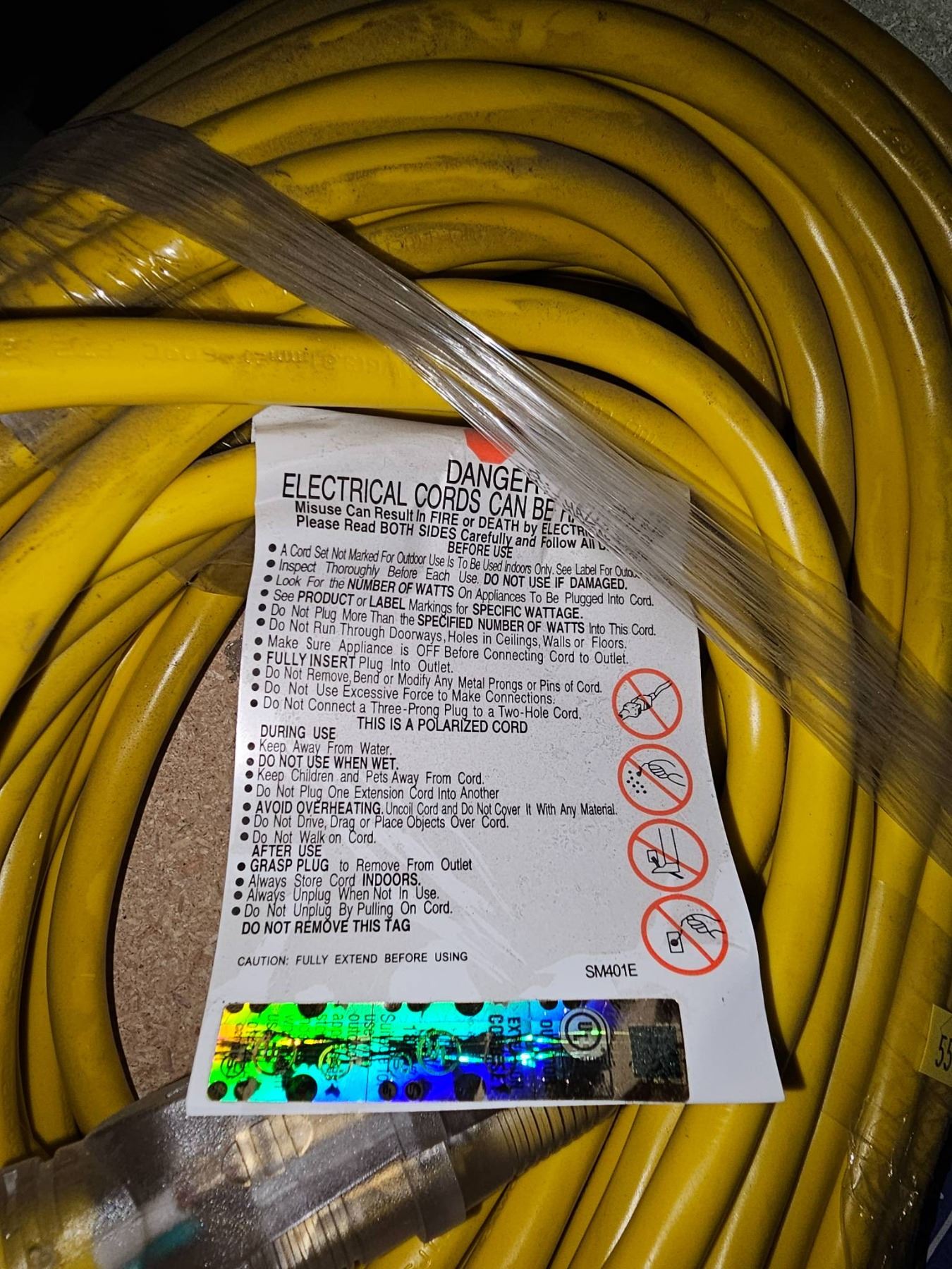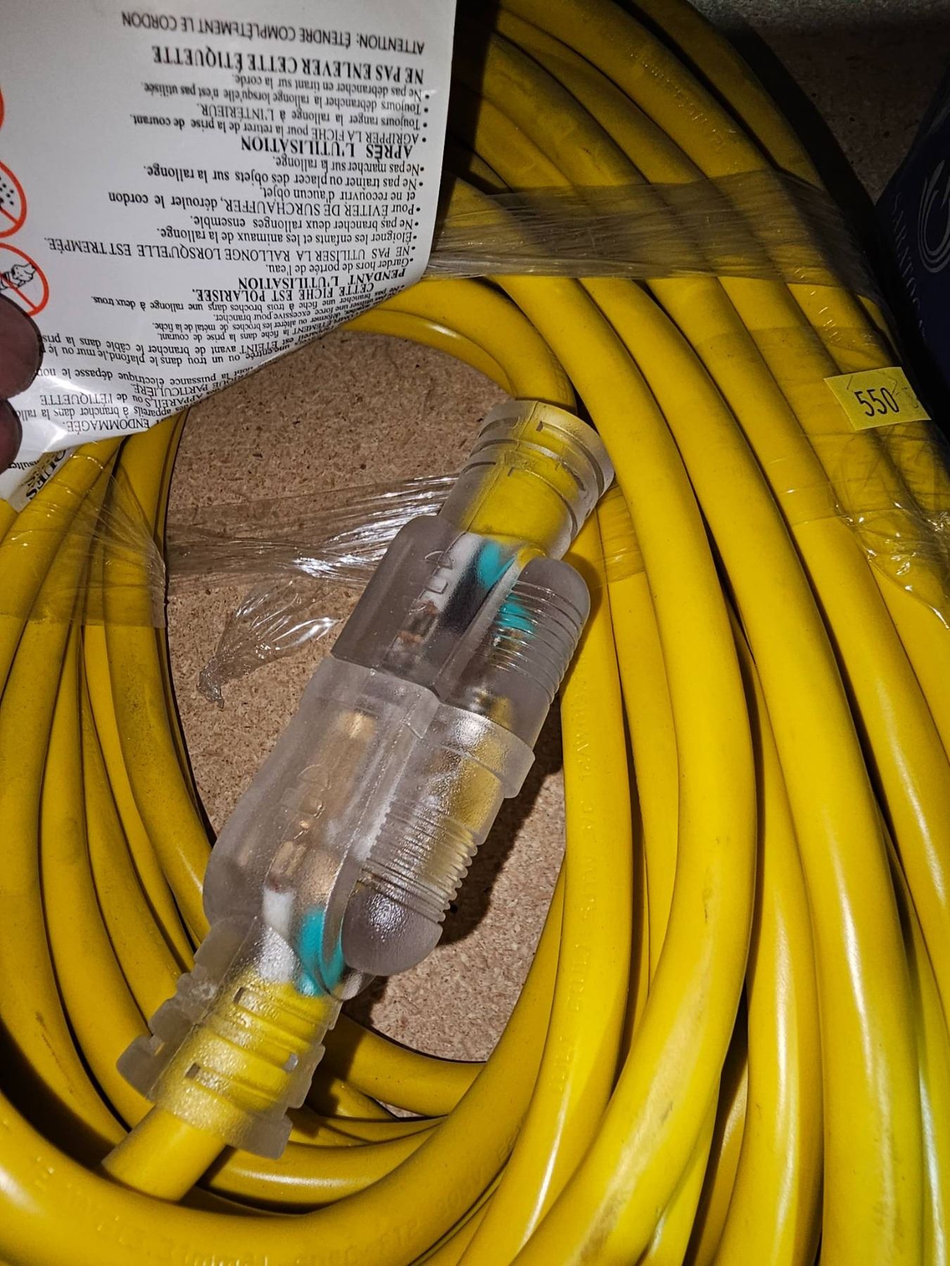 Yellow Electrical Extension Cord with 3-Prong Plug, 550 Rating