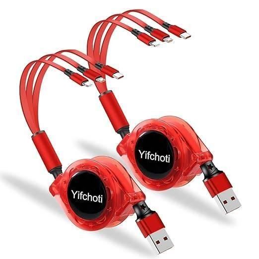 Yifchoti 2 Pack 3 in 1 Multi USB Retractable Charger Cable,3A Multiple Charging Cord Adapter with IP