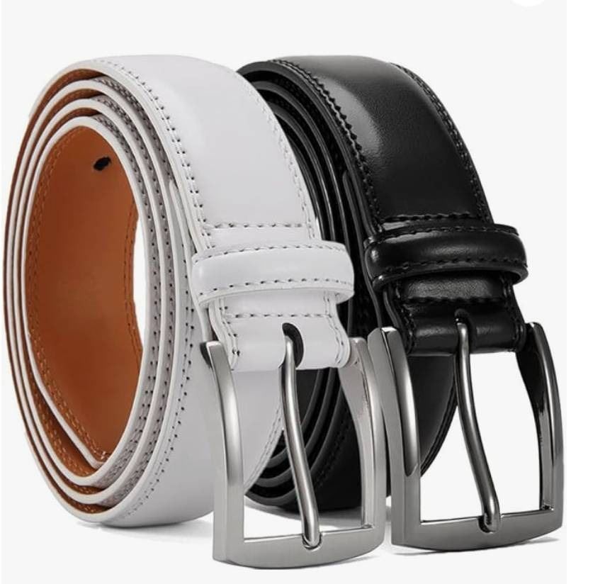 Yooran Belts Men 2 Pack, Leather Belt 1 3/8″ Prong Buckle for Dress Pants, Casual & Work, G