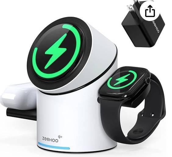 ZEEHOO 3 in 1 Charging Station for Apple Devices, CylinTrick-R Mag-Safe Charger Stand, Qi2 15W Auto-