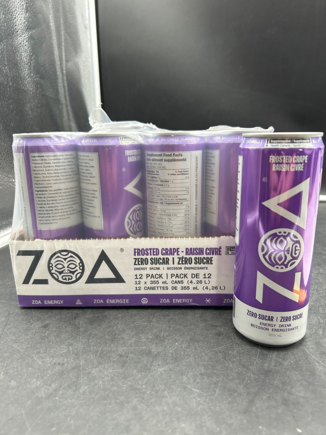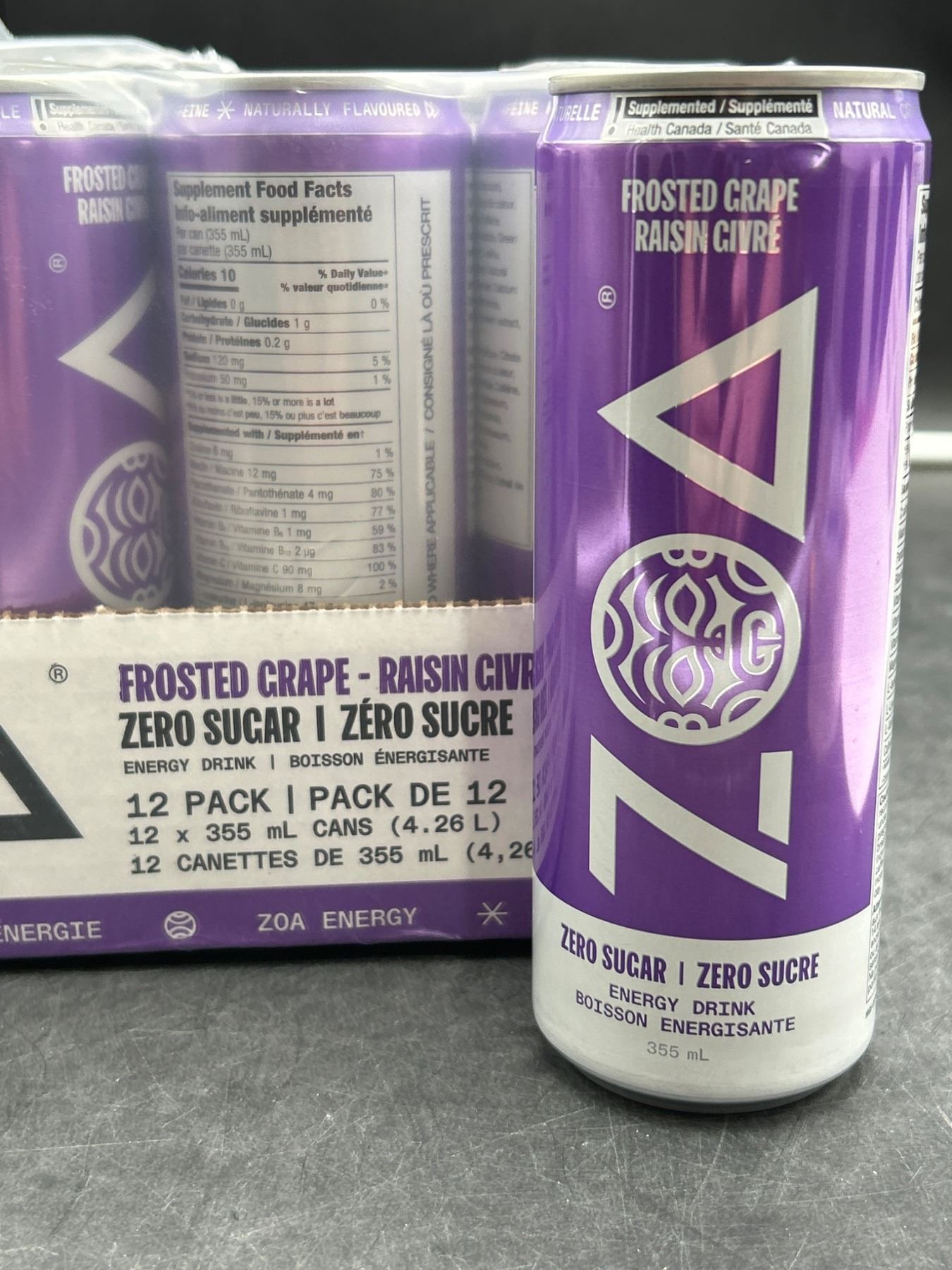 ZOA Zero Sugar Energy Drinks, Frosted Grape – 355ml (Pack of 12)
