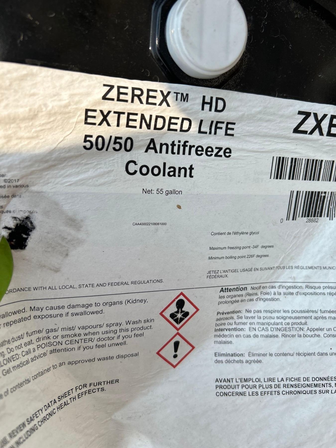 Zerex HD 50/50 Antifreeze Coolant Freight Claim 55 Gal Drum
