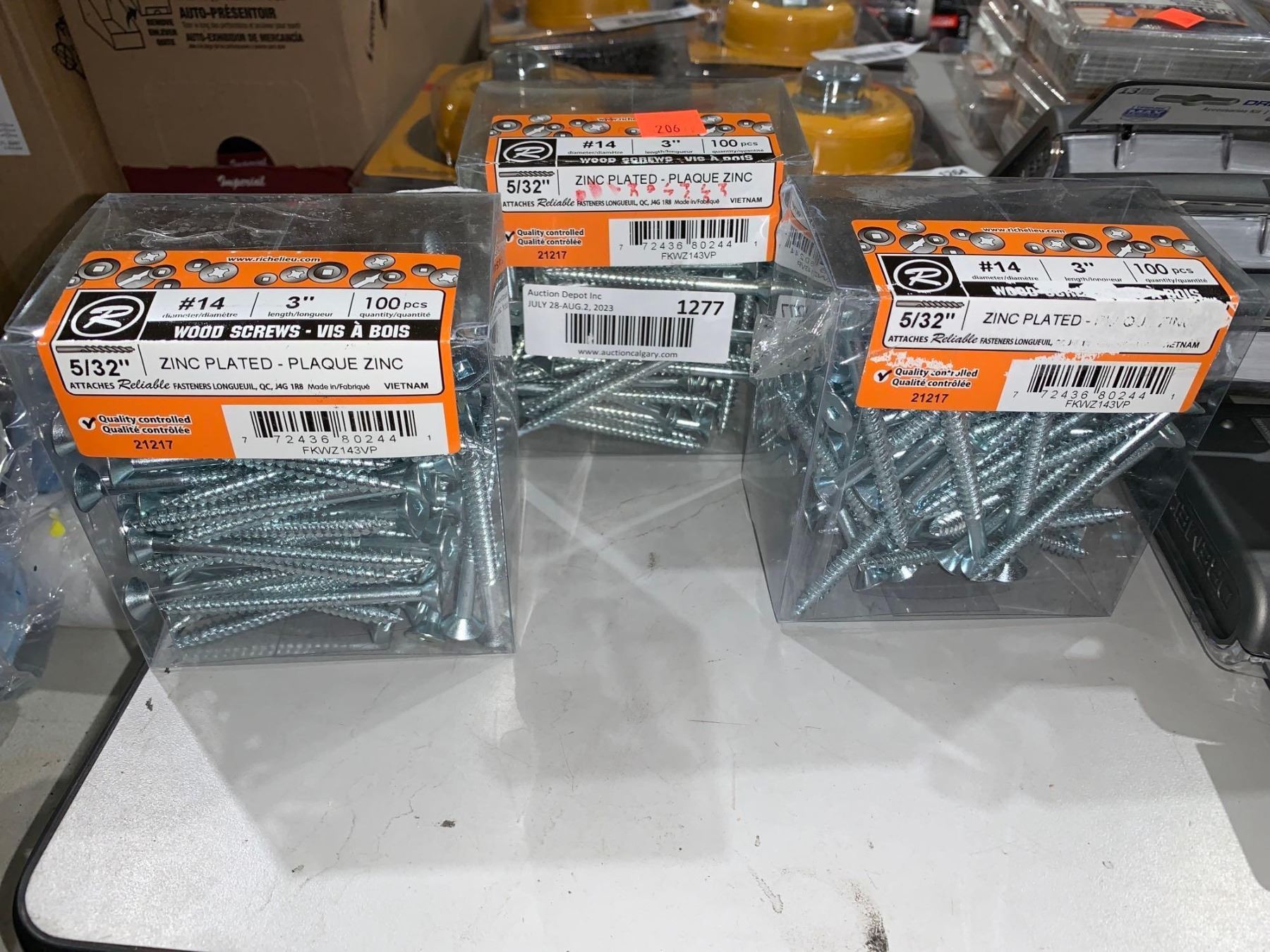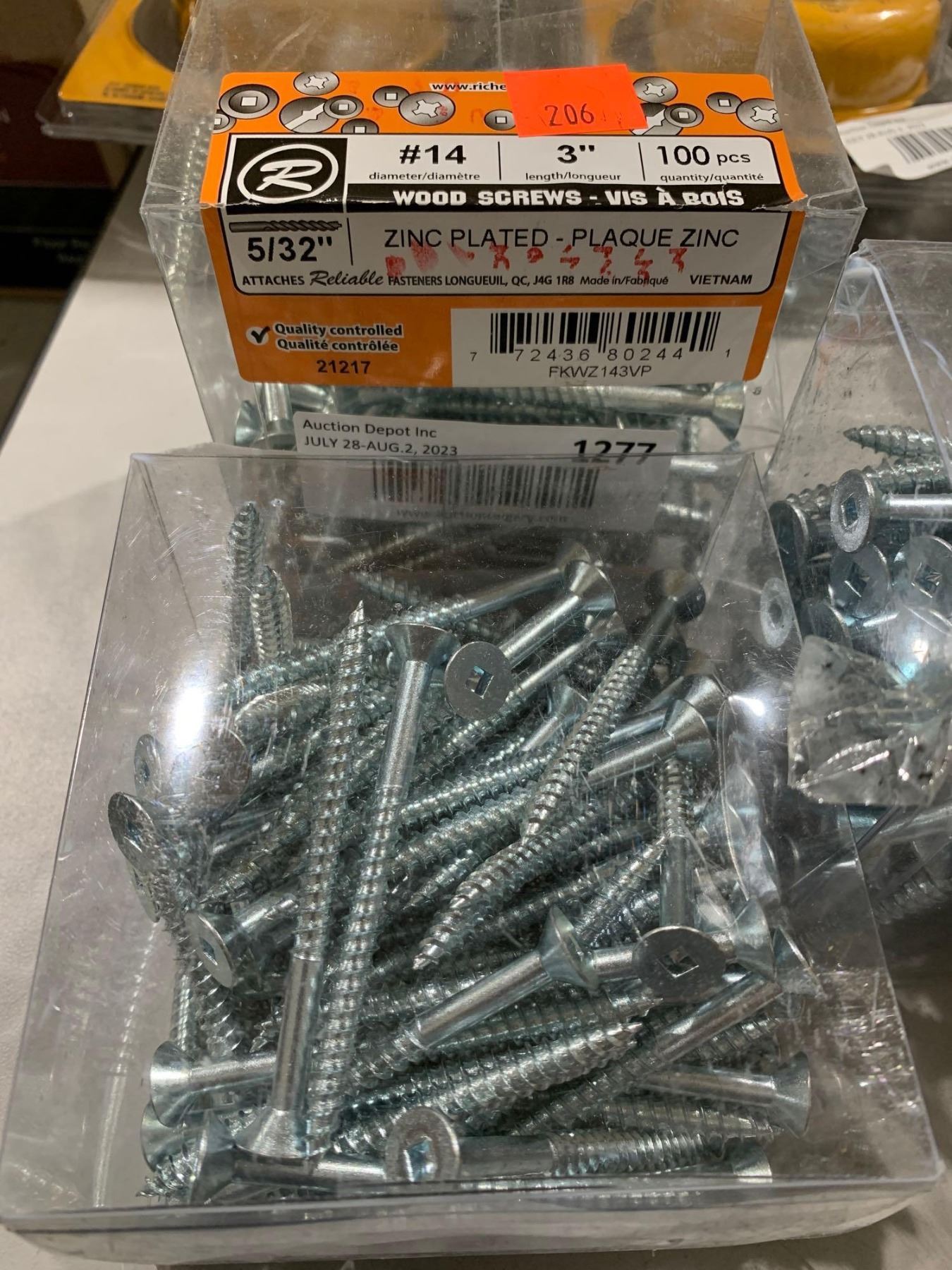 Zinc Plated Wood Screws 3" #14 diameter  5/32" 100pcs Lot of 3