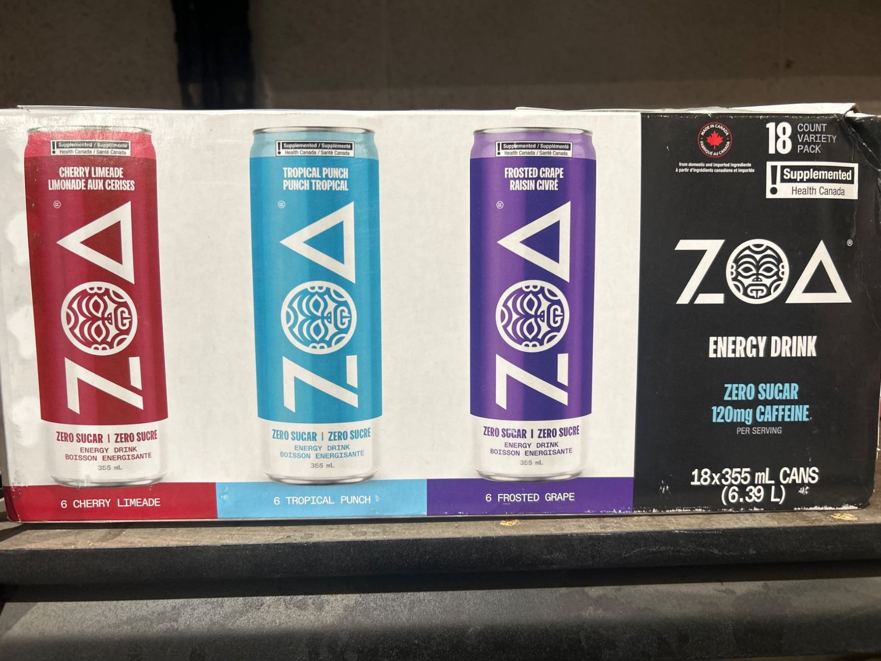 Zoa Energy Drink Variety Pack, Zero Sugar, 18x355mL Cans
